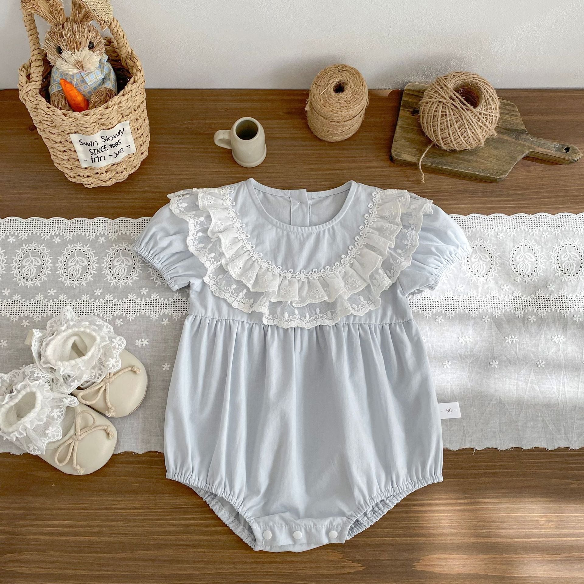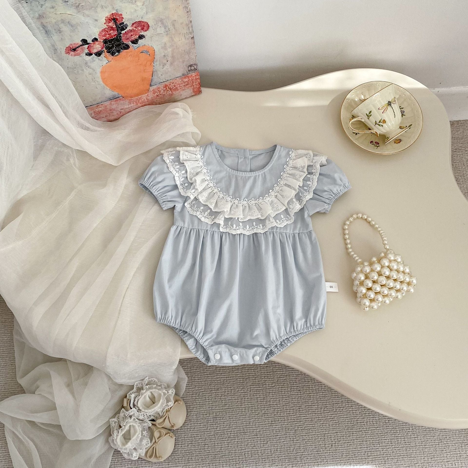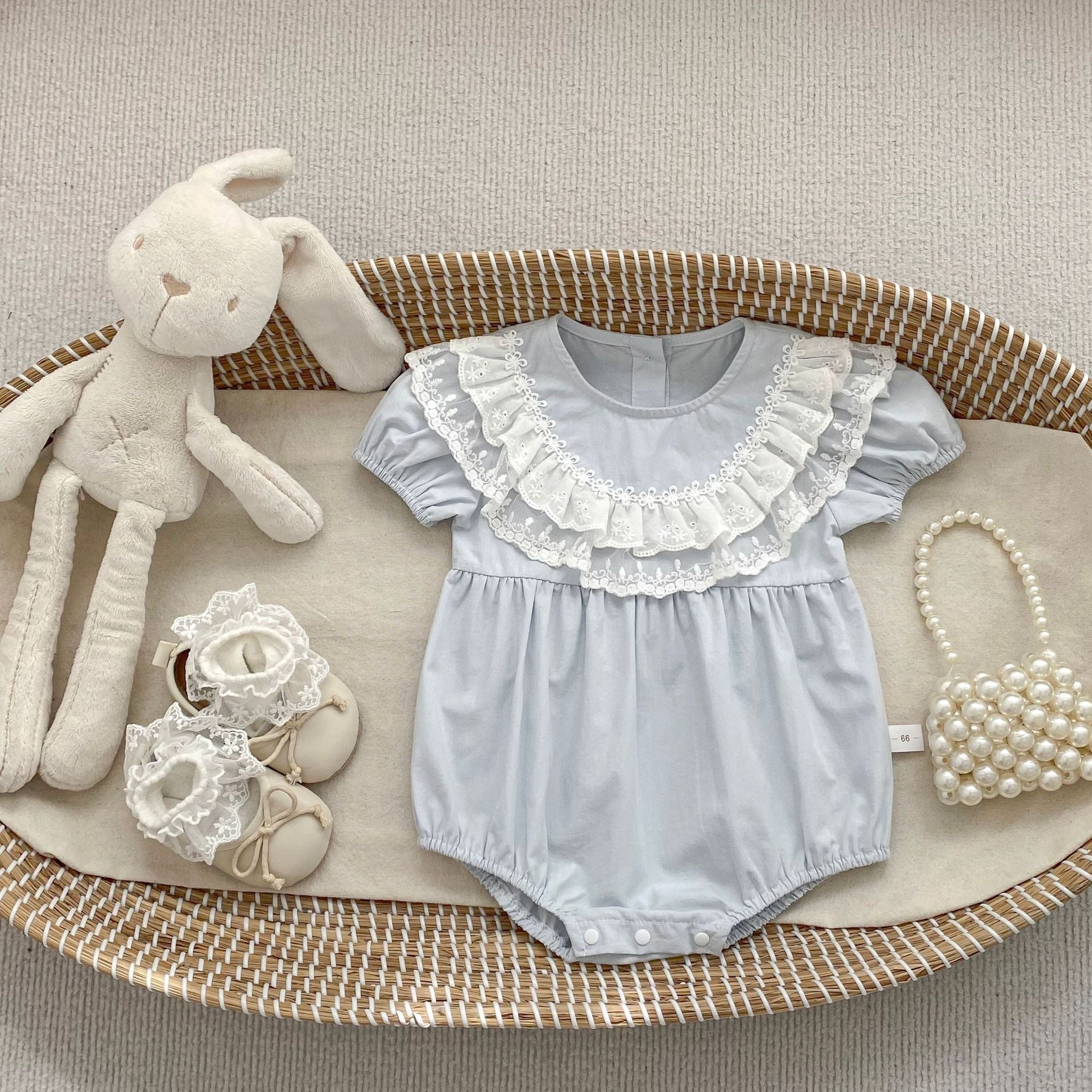 【66-90cm】ロンパース レース パフスリーブ おしゃれ ベビー服