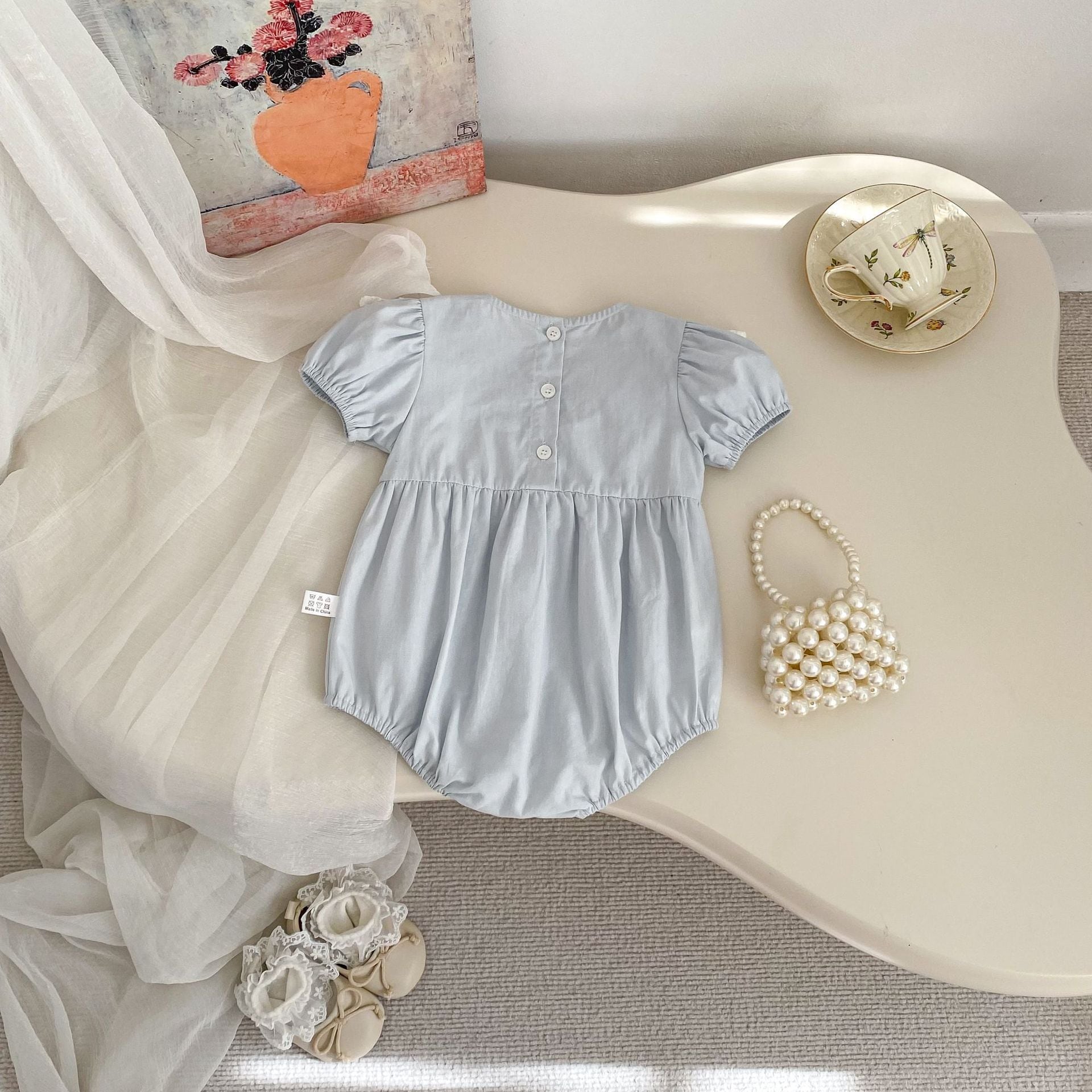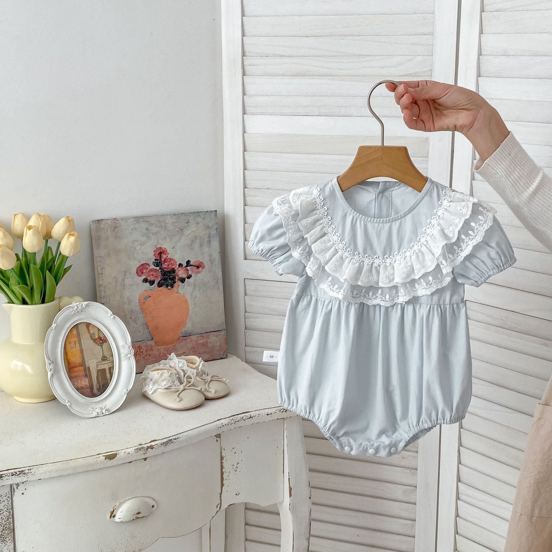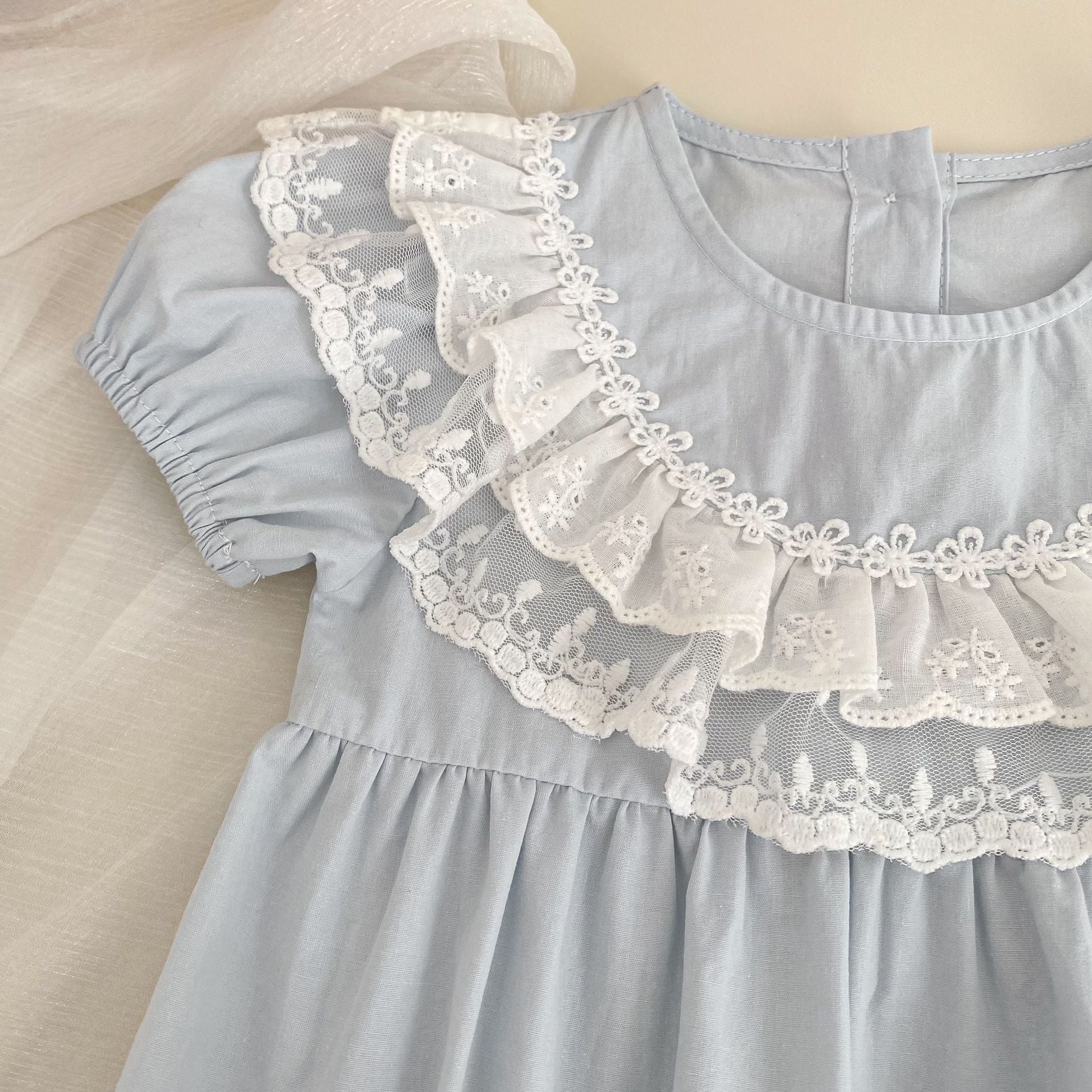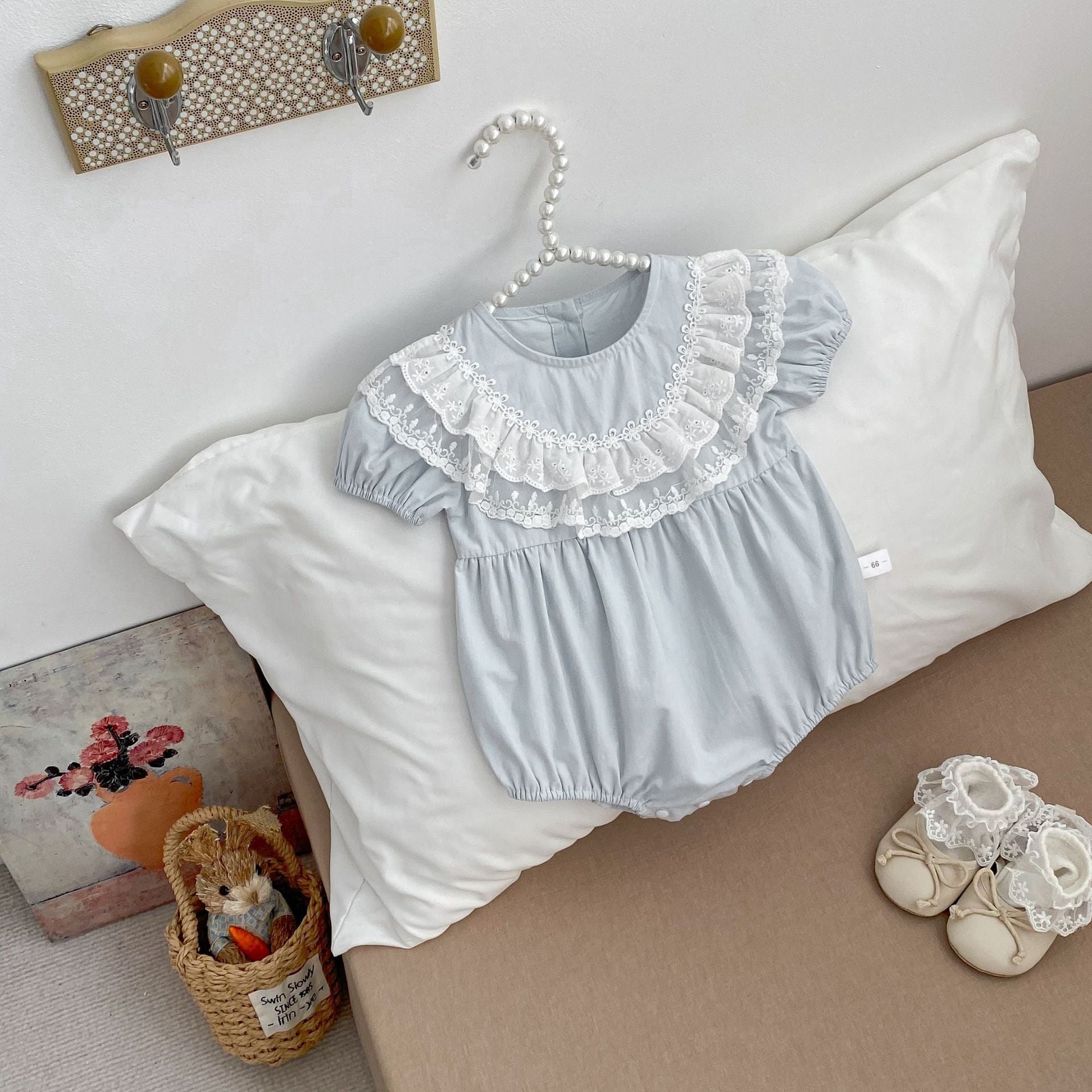 【66-90cm】ロンパース レース パフスリーブ おしゃれ ベビー服