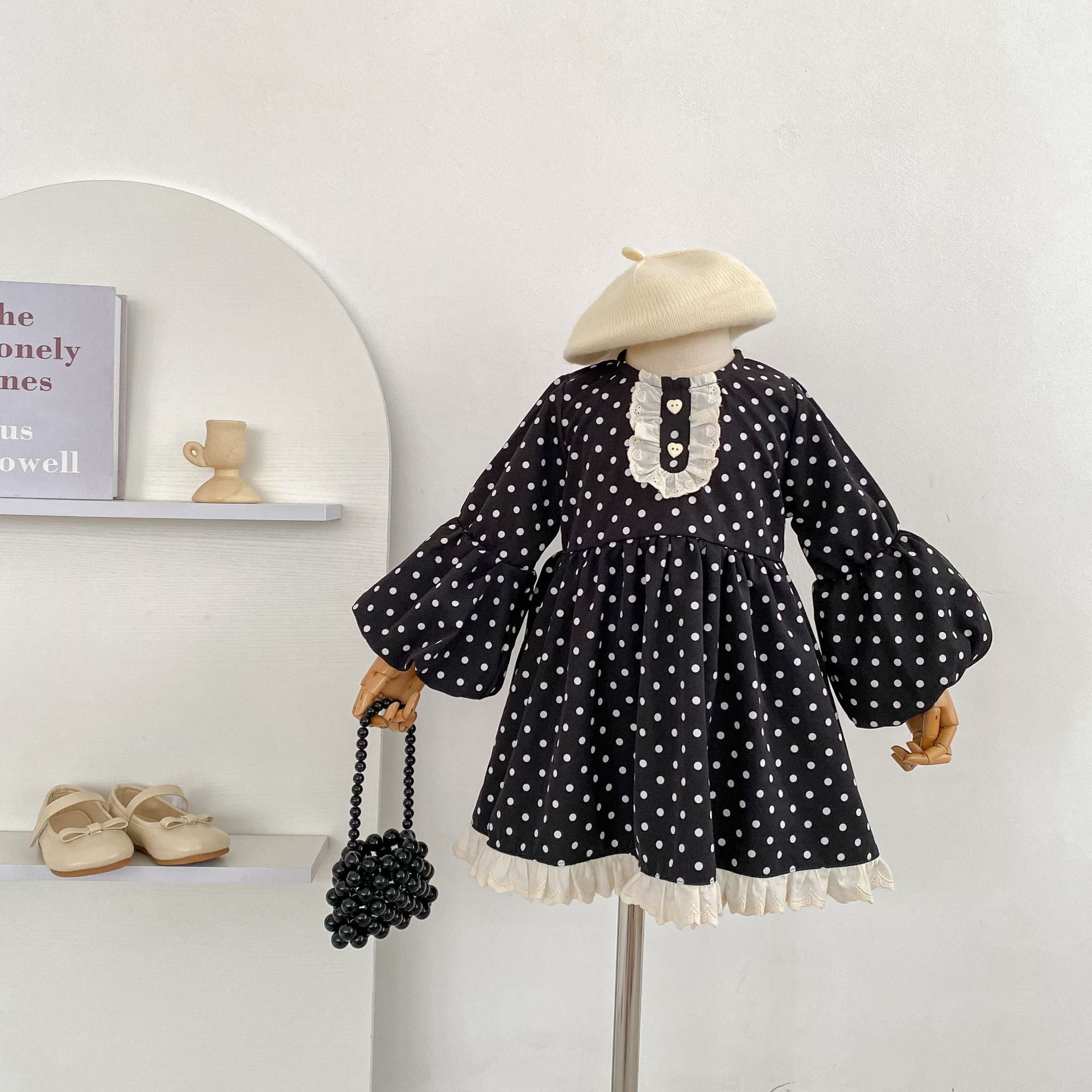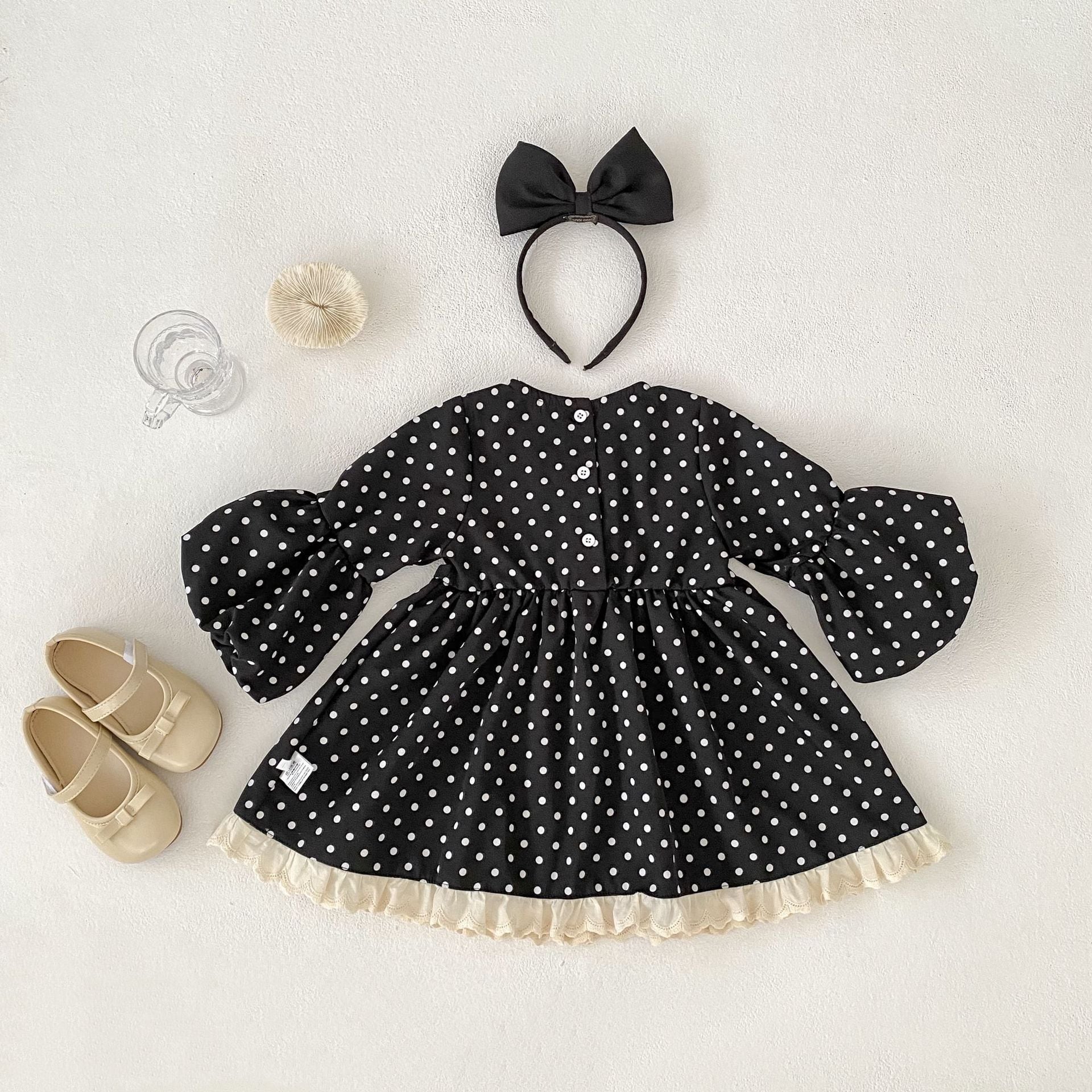 【80-130cm】ワンピース パフスリーブ ドット 可愛い 女の子