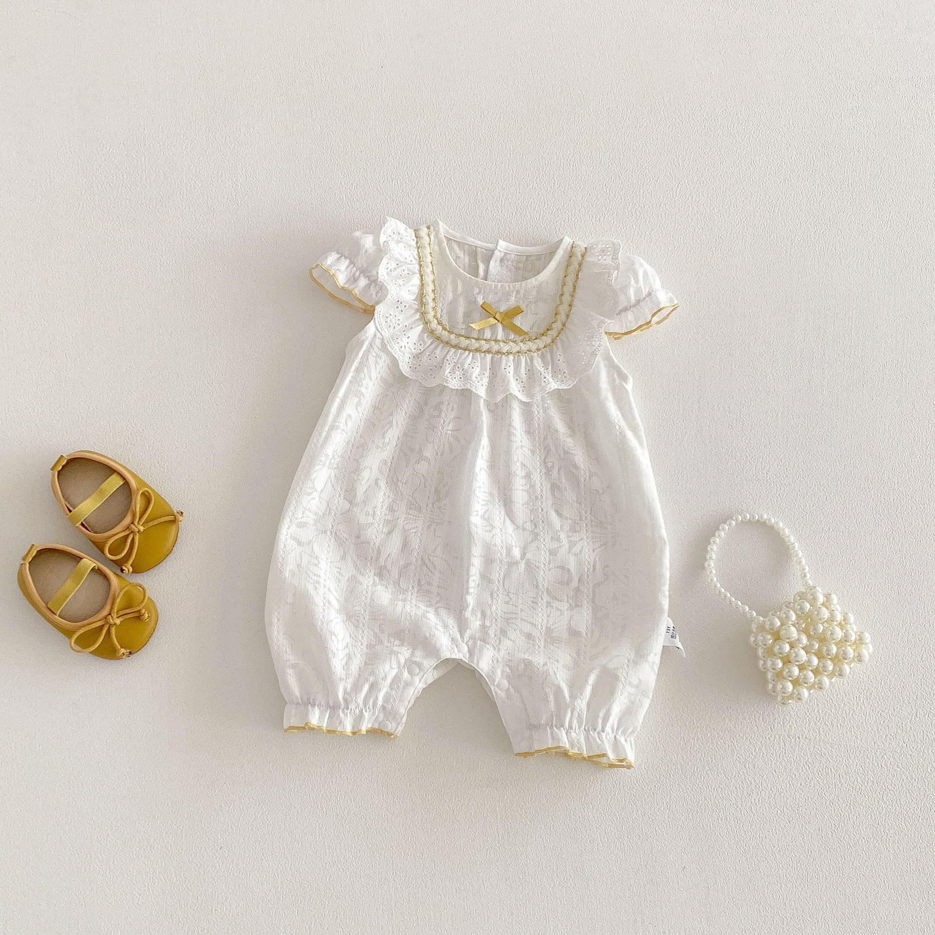 【66-90cm】オールインワン フリル ホワイト シンプル ベビー服