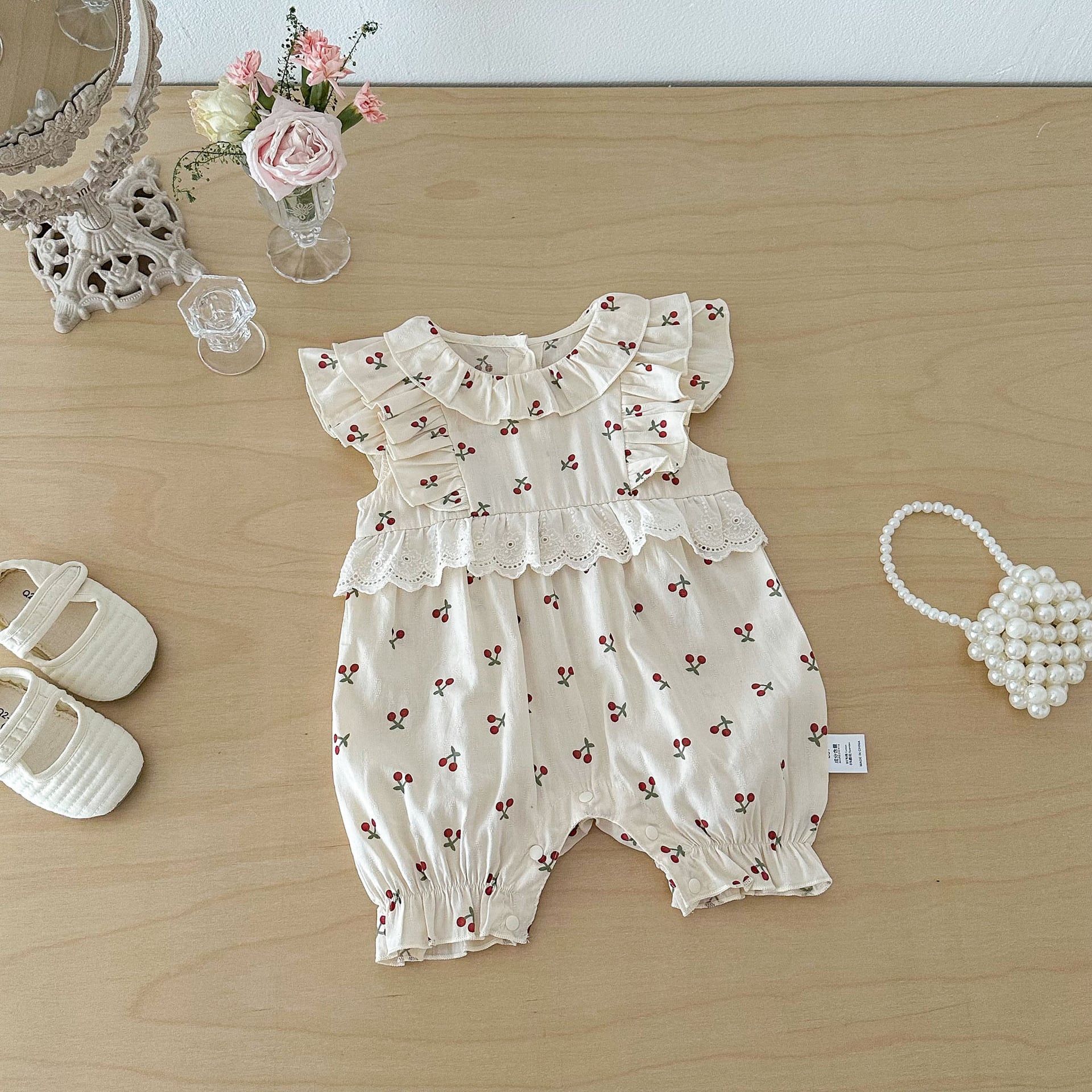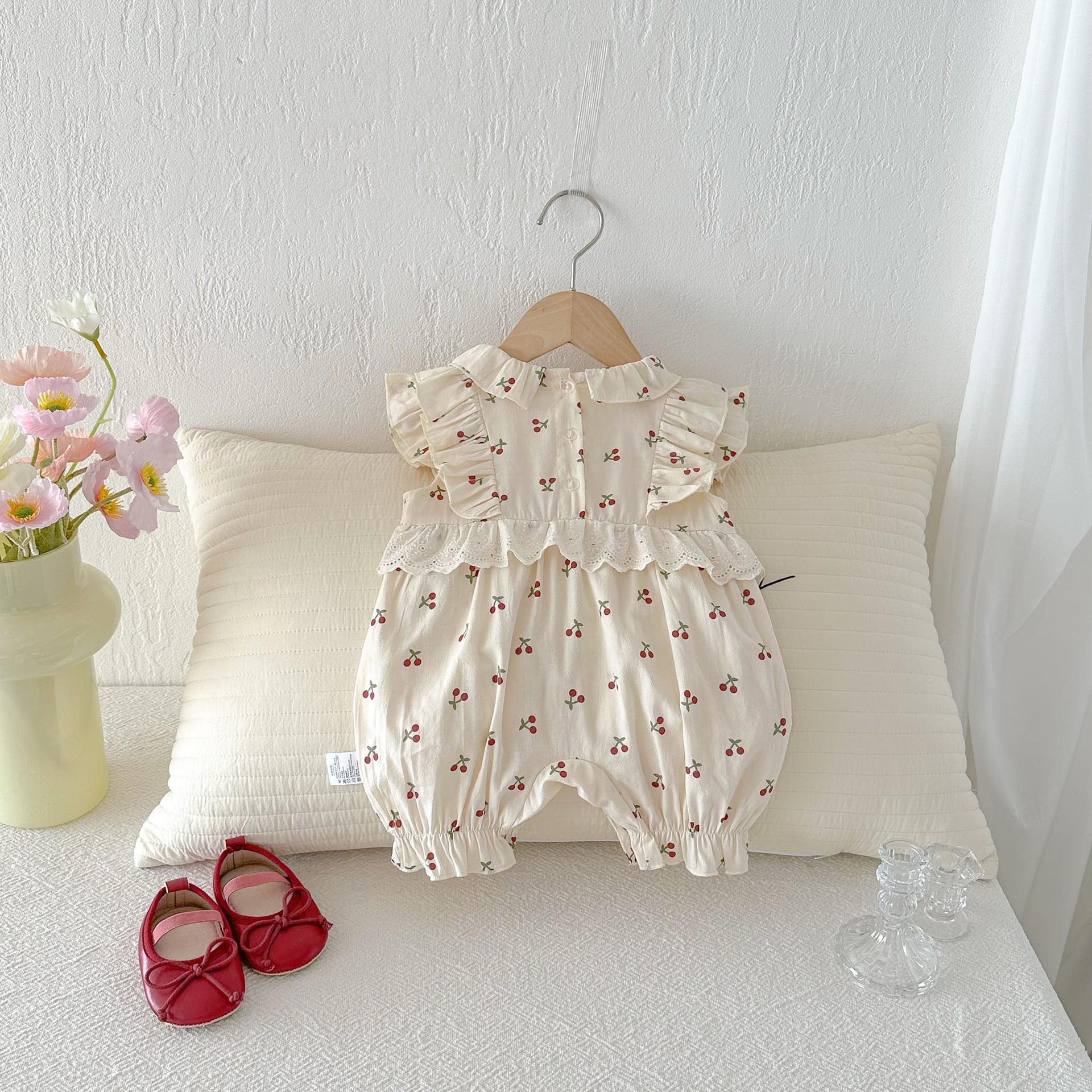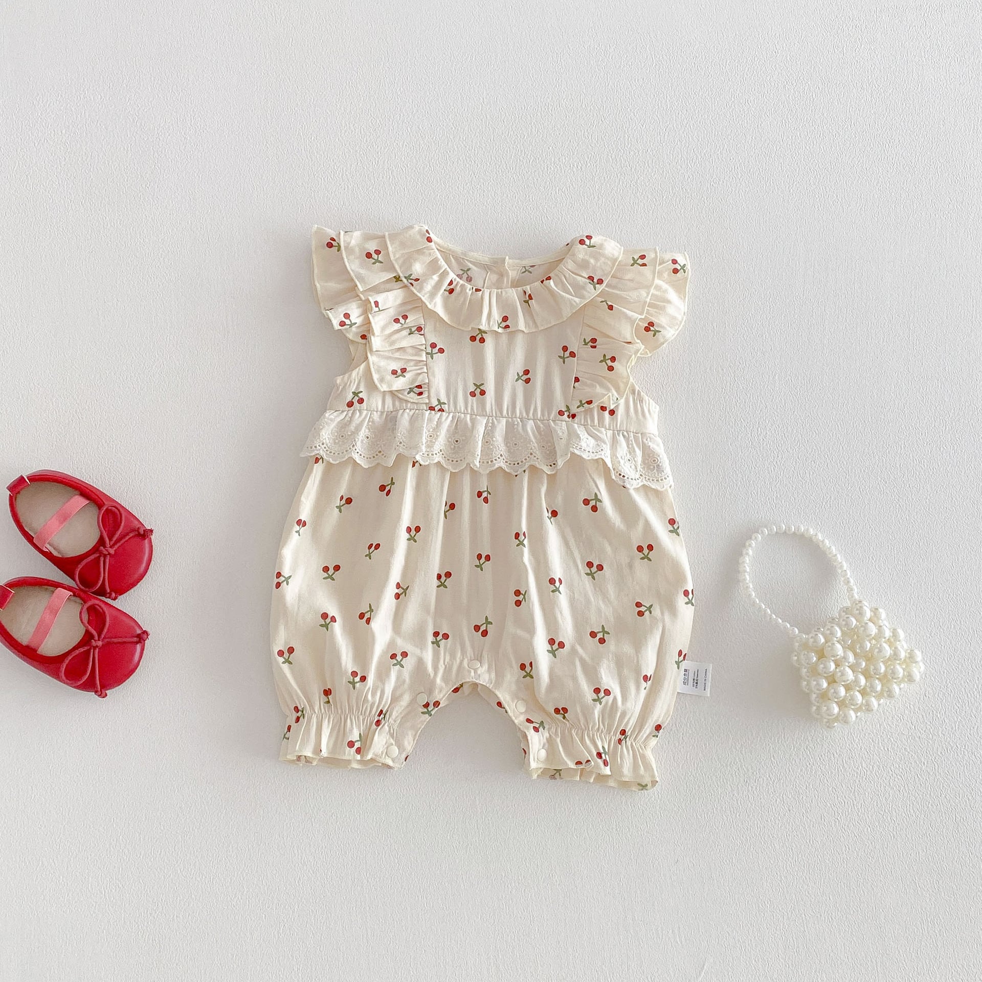 【66-90cm】オールインワン チェリー柄 フリル 可愛い ベビー服