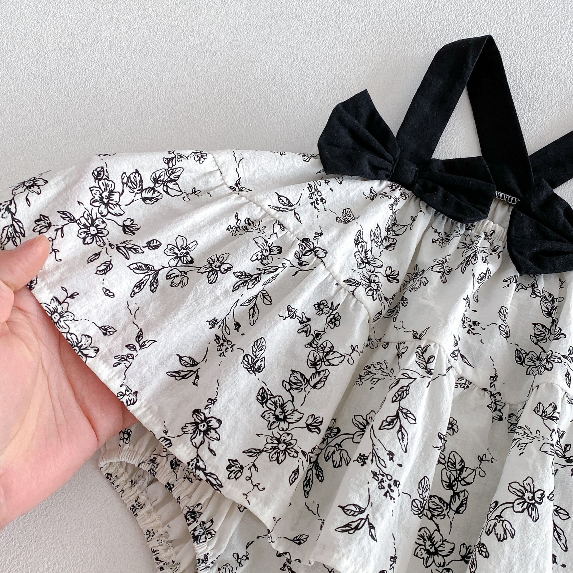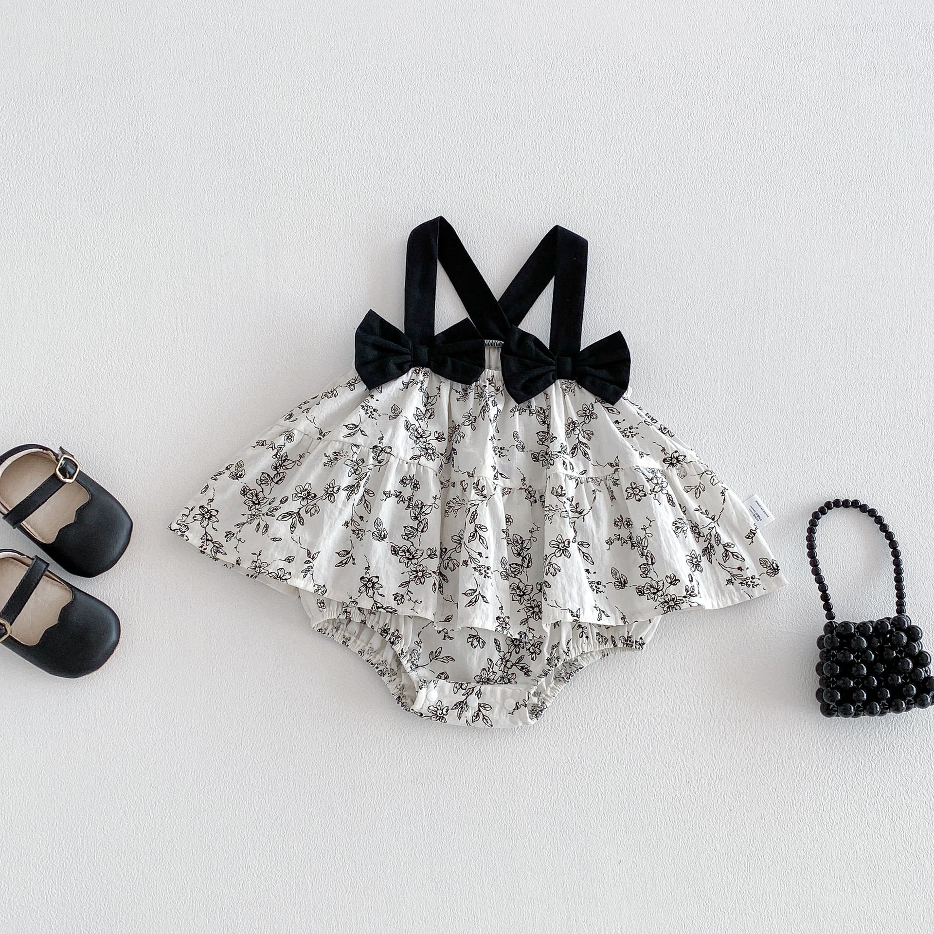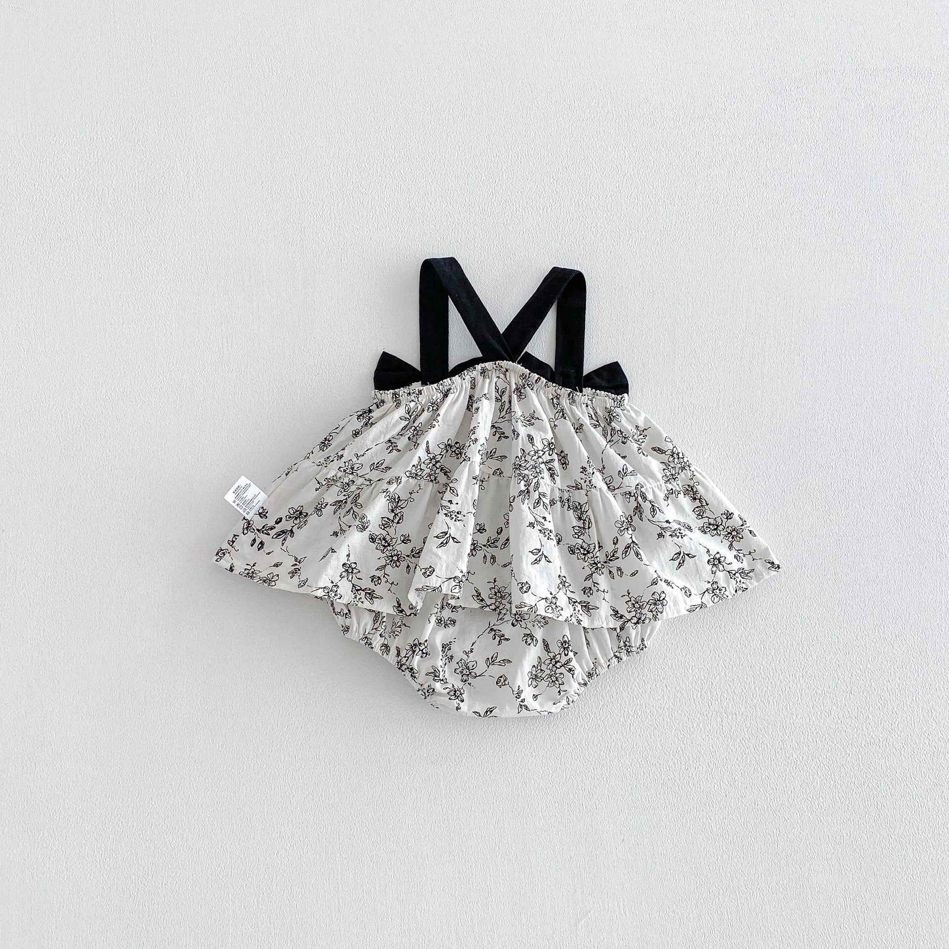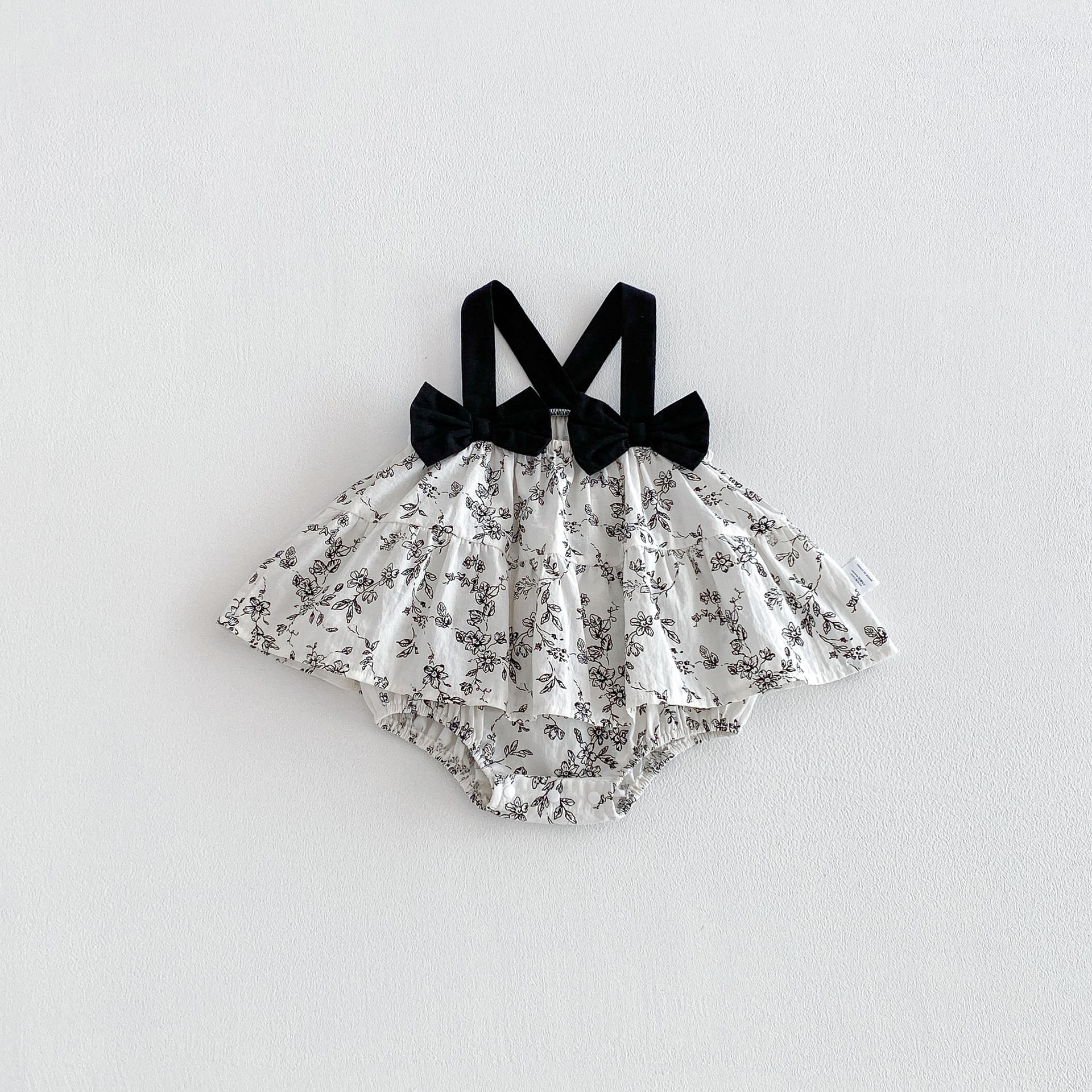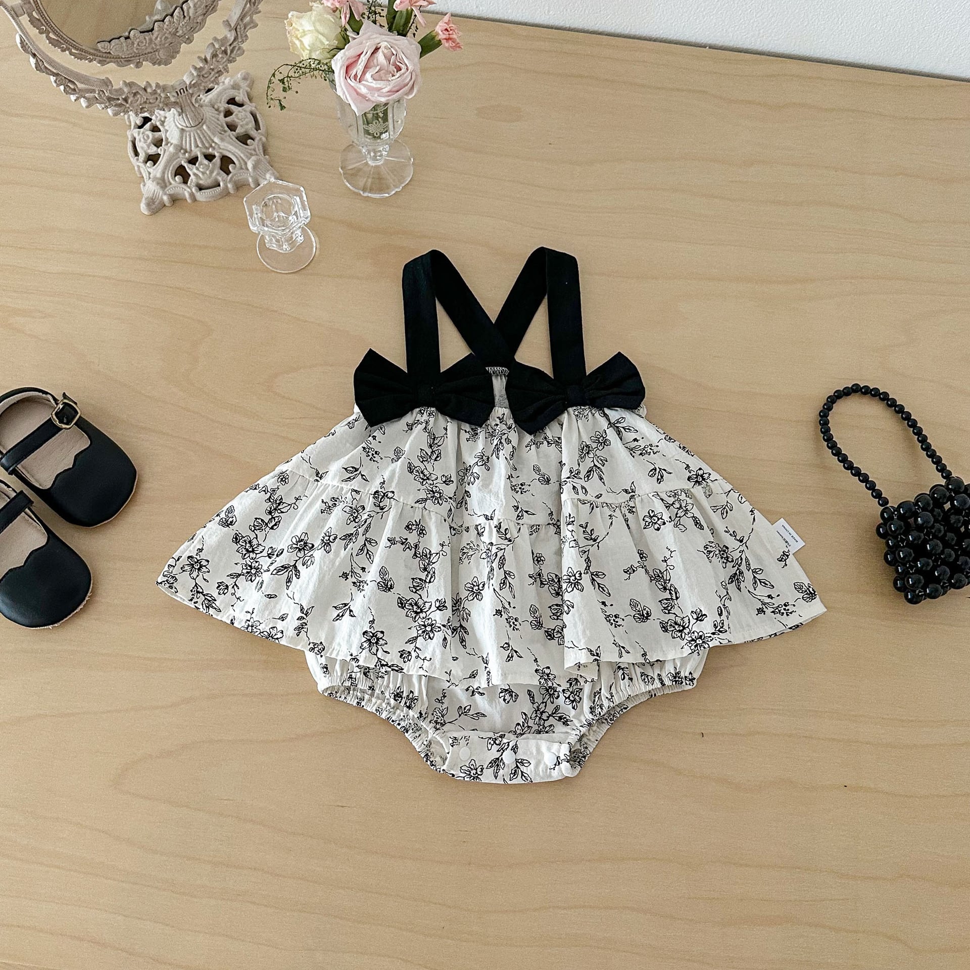【66-90cm】キャミロンパース ブラック花 可愛い ベビー服