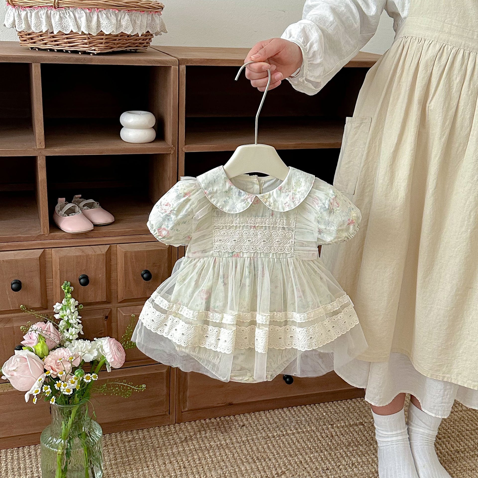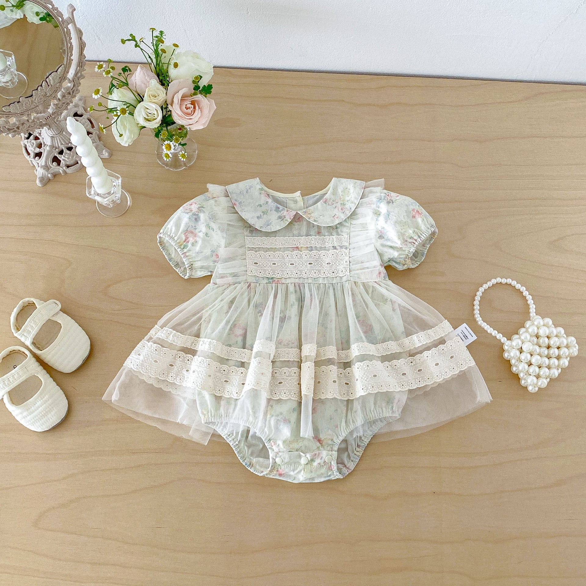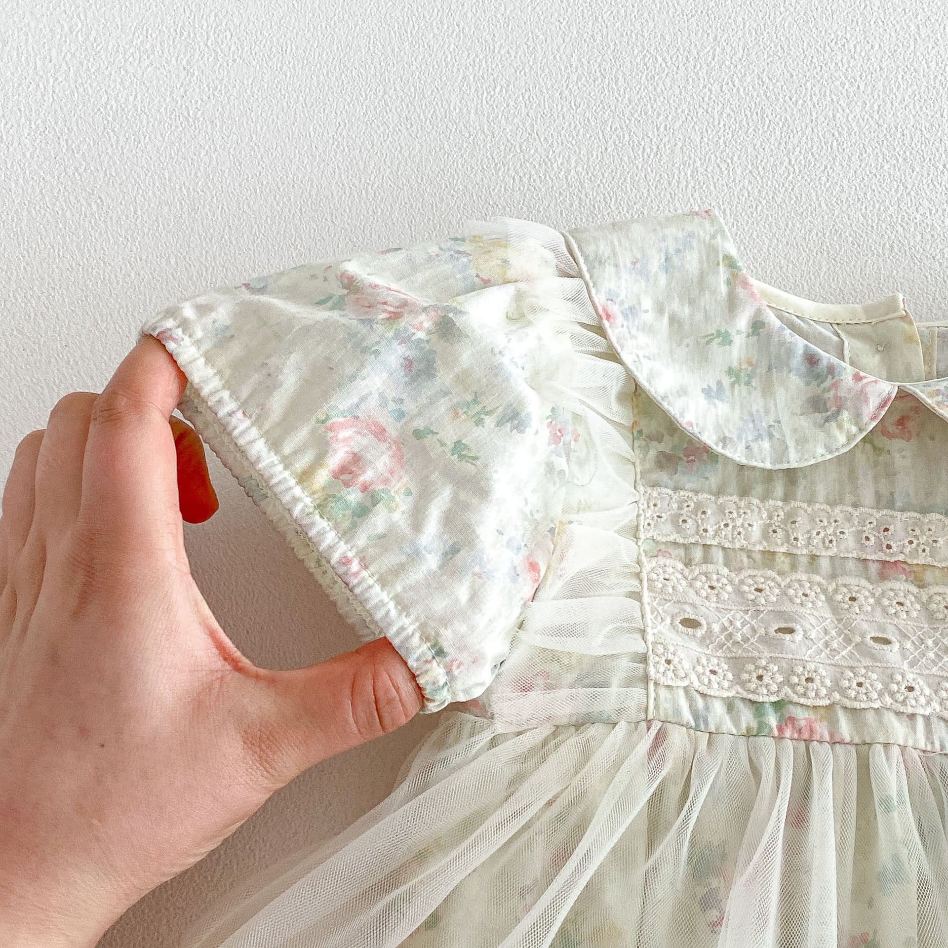 【66-90cm】ロンパース グリーン 花 プリンセス おしゃれ 女の子