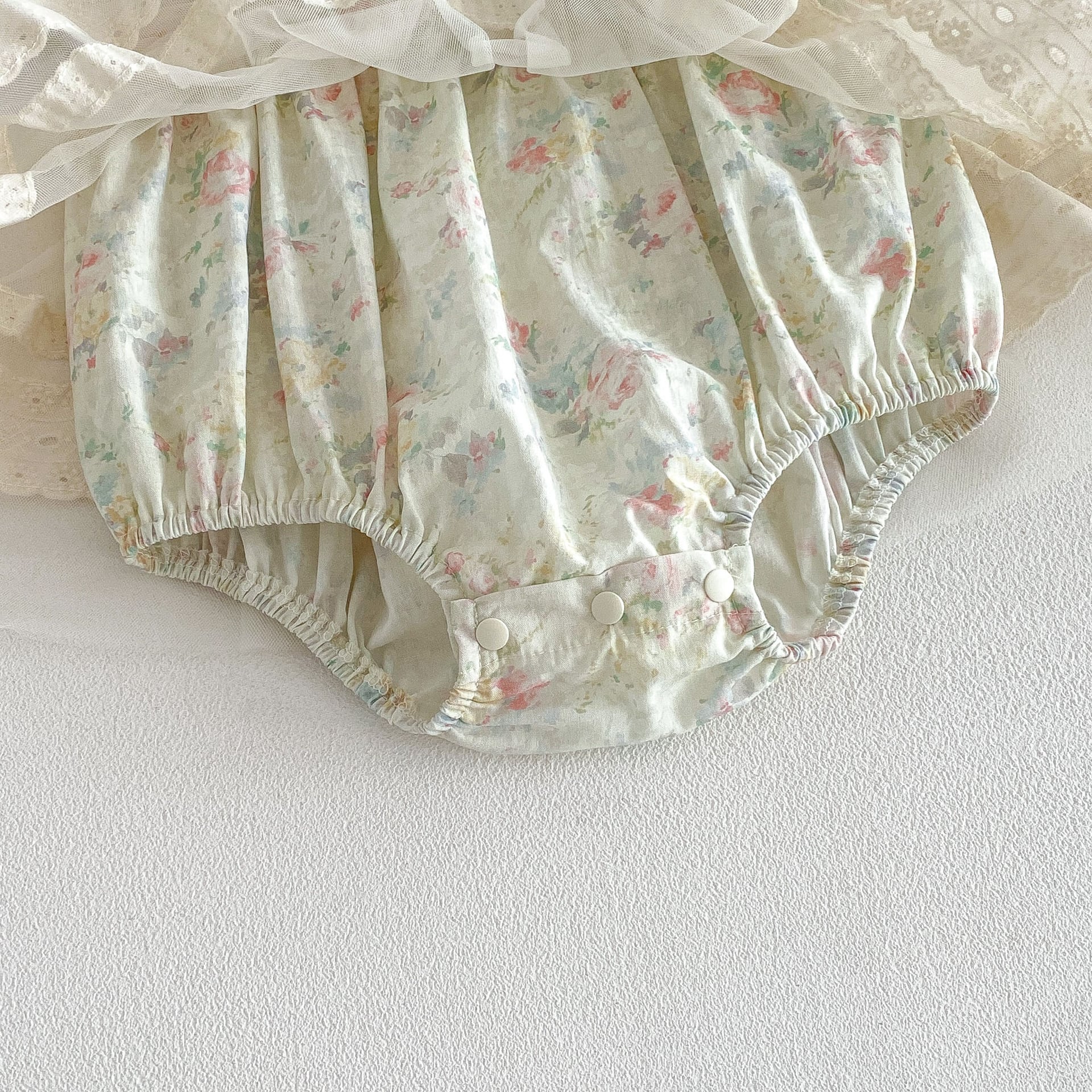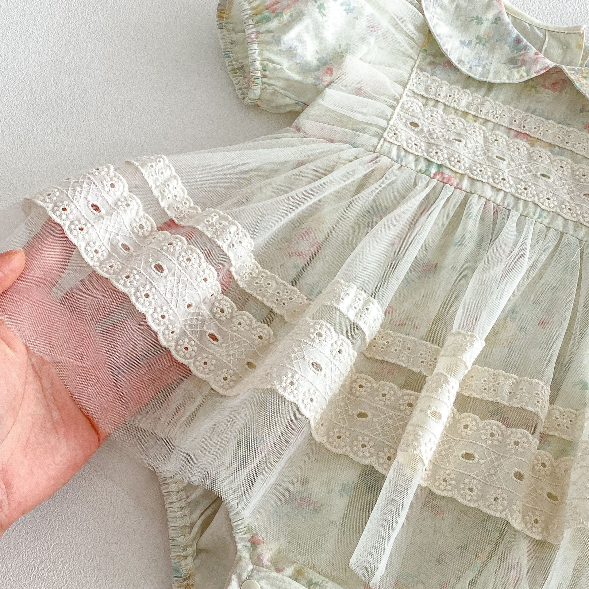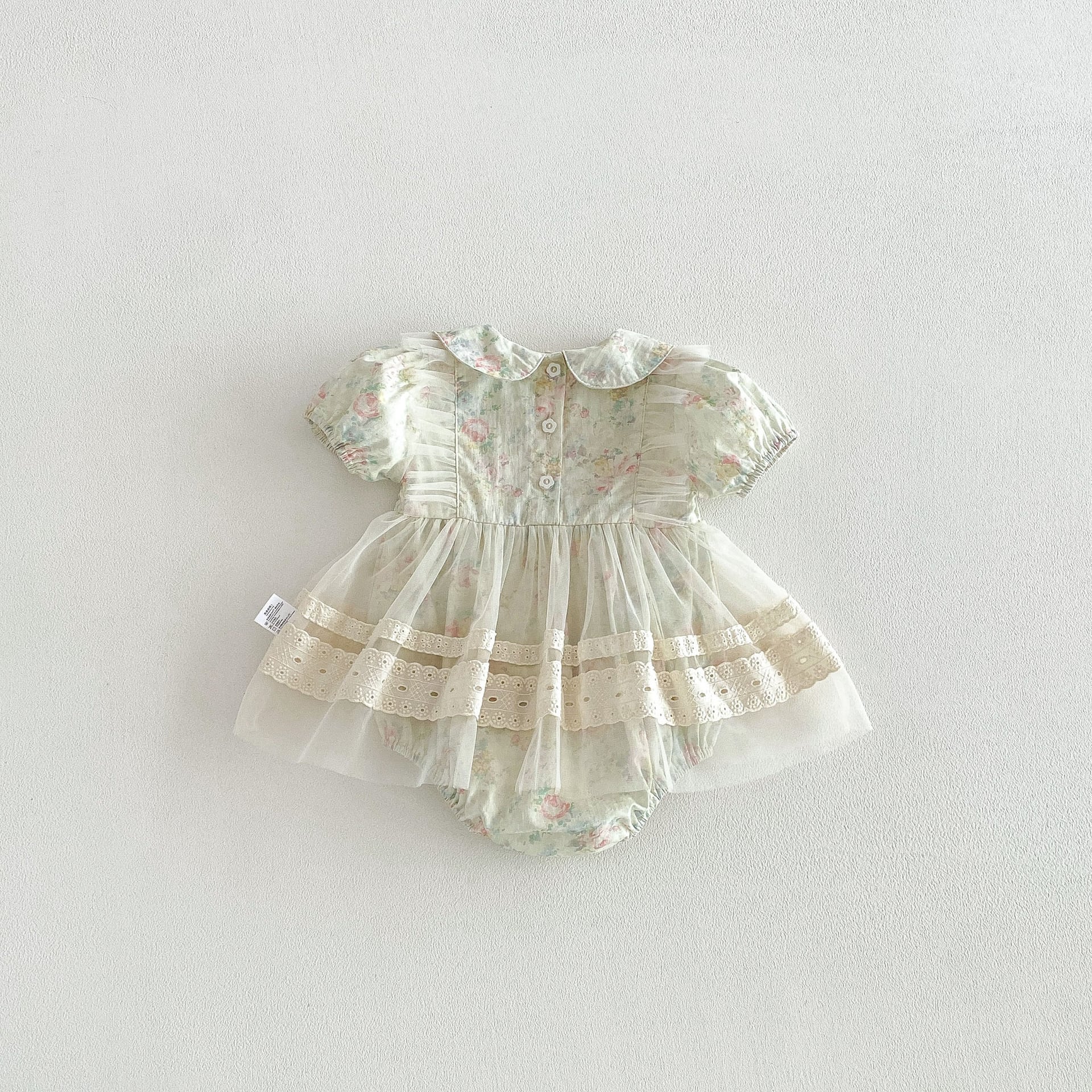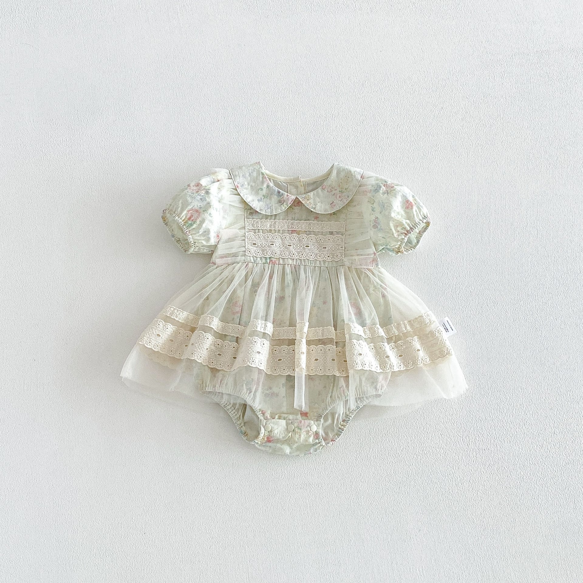 【66-90cm】ロンパース グリーン 花 プリンセス おしゃれ 女の子