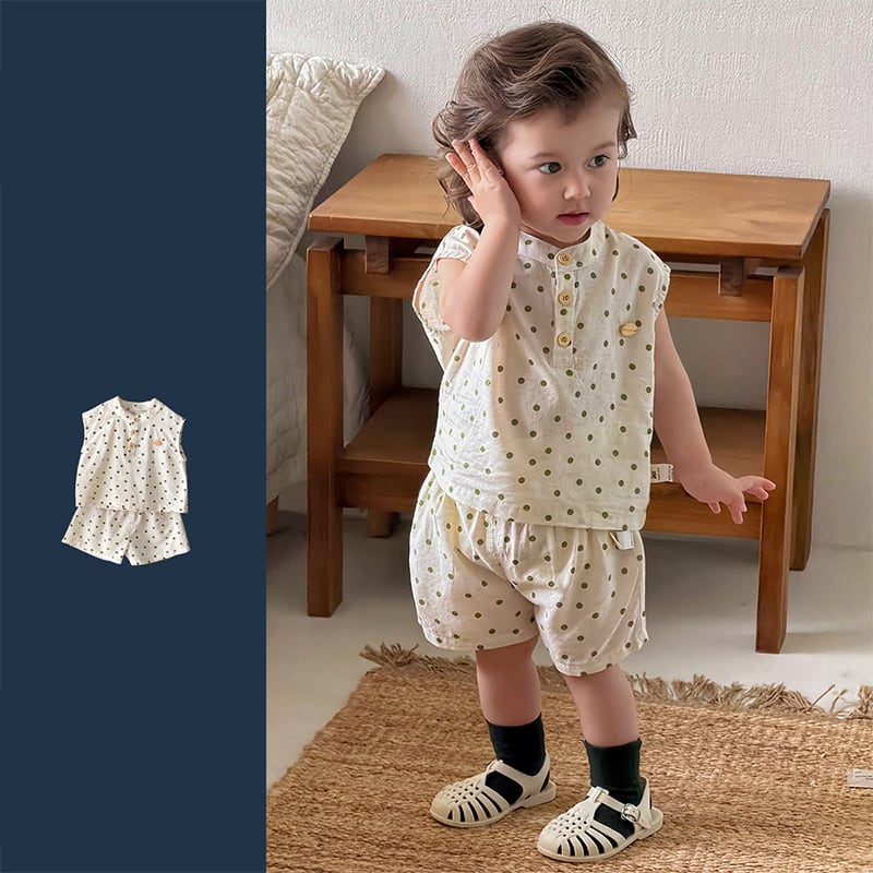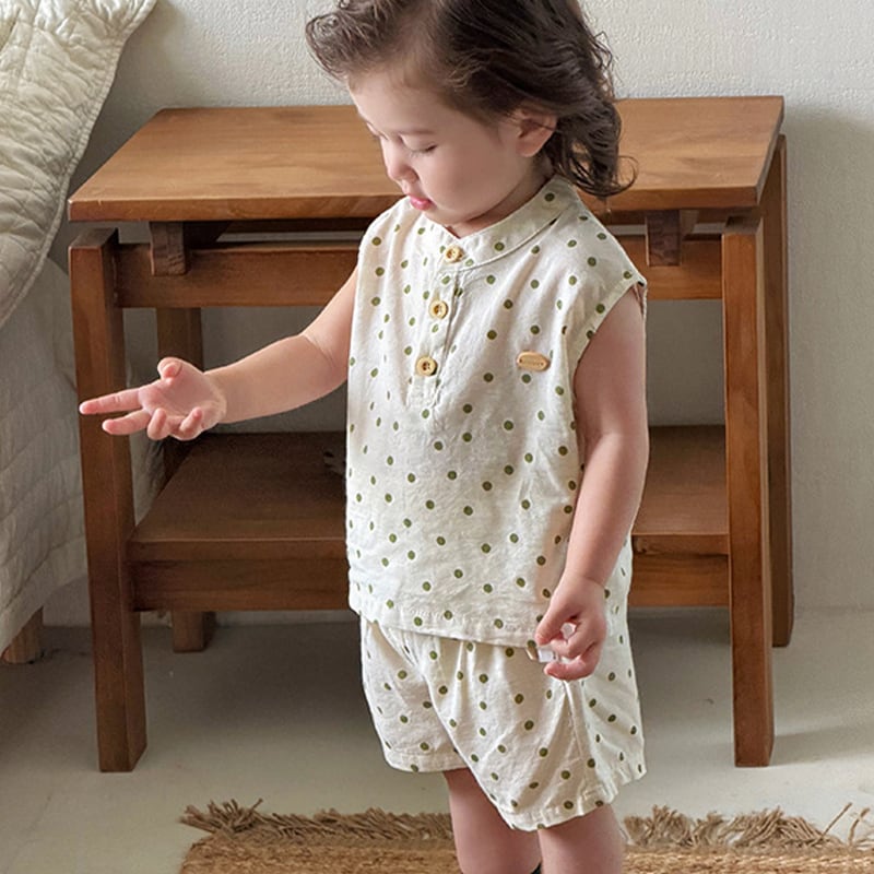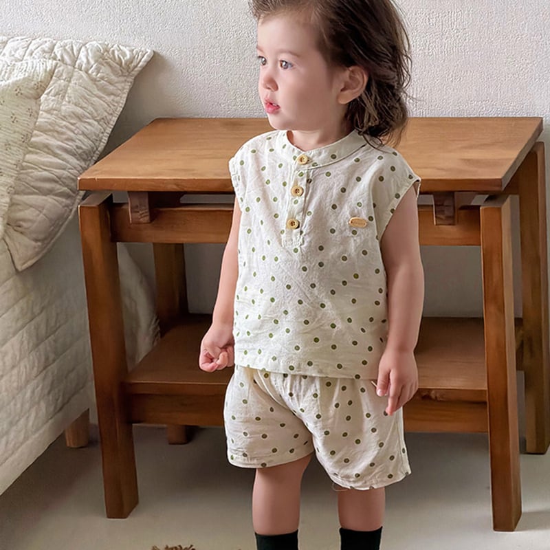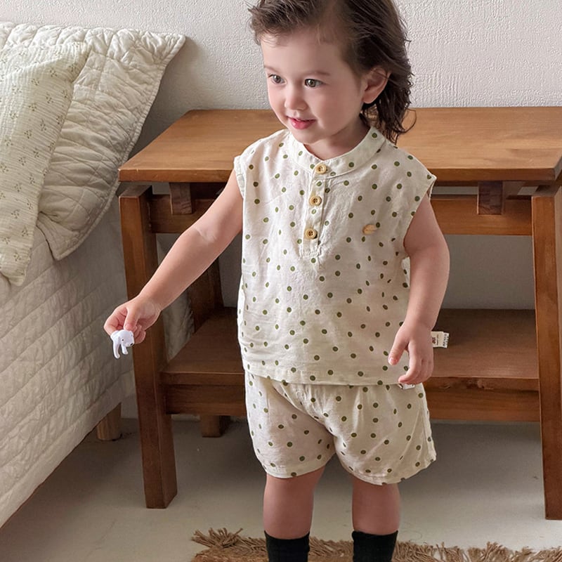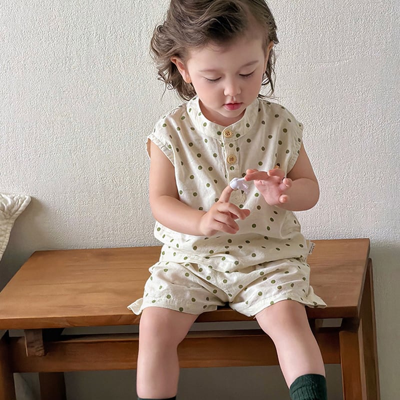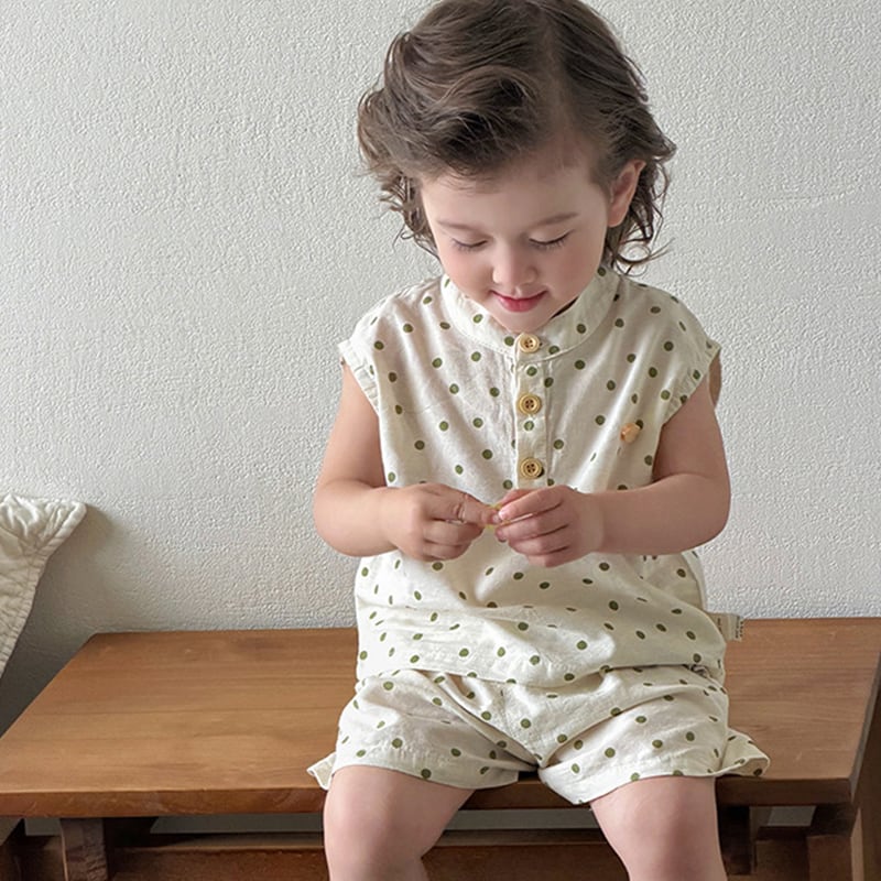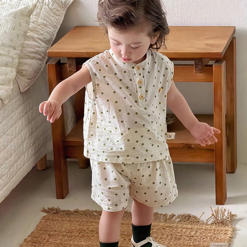 【73-110cm】セットアップ ノースリーブ ドット 肌に優しい
