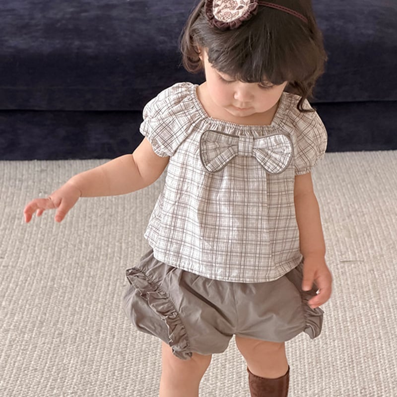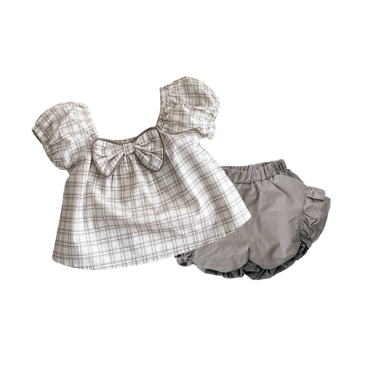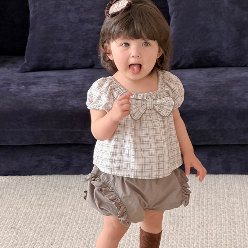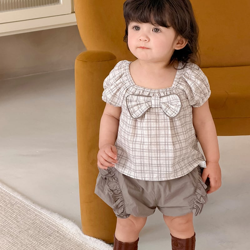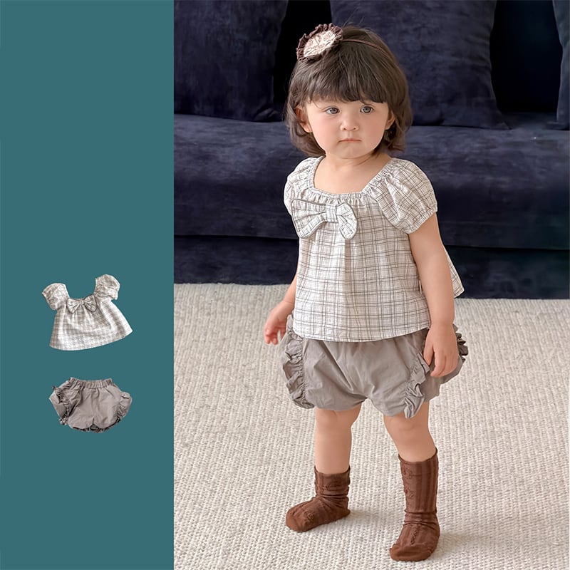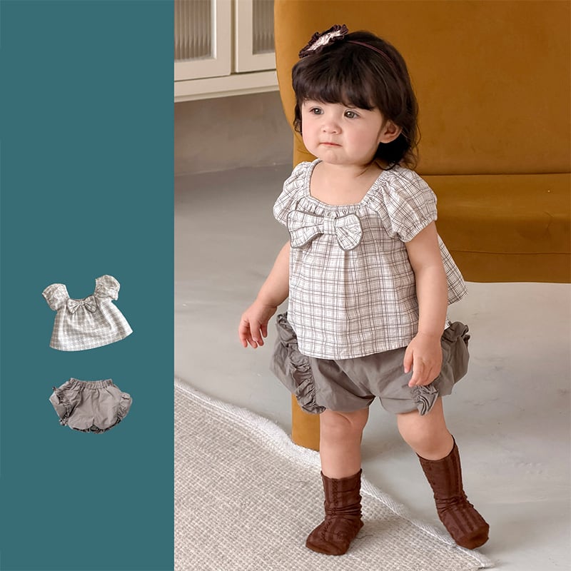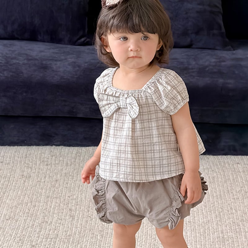 【73-100cm】セットアップ パフスリーブ 蝶結び シンプル ベビー服