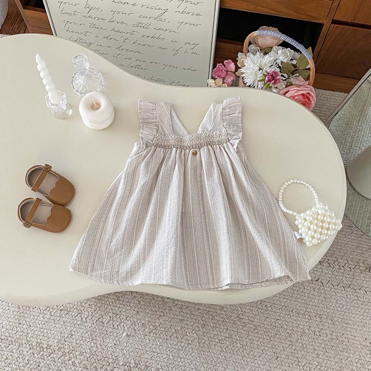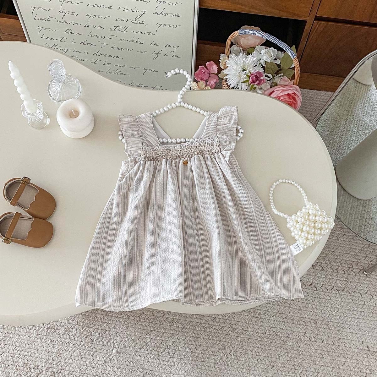 【80-120cm】ワンピース ストライプ フリル シンプル