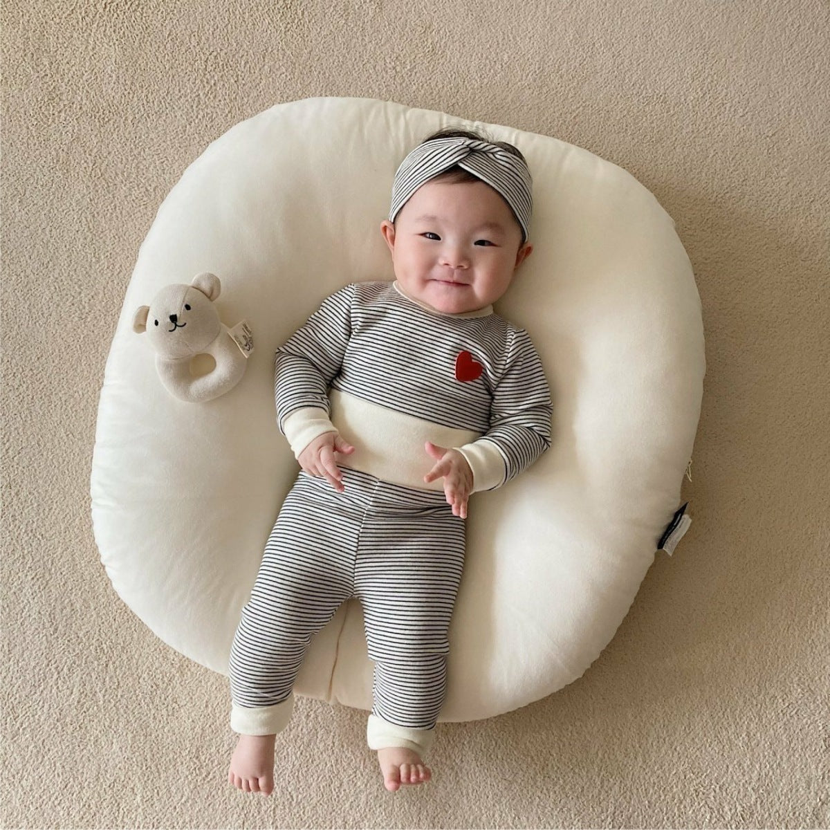 【66-90cm】ハート柄 ボーダー セットアップ