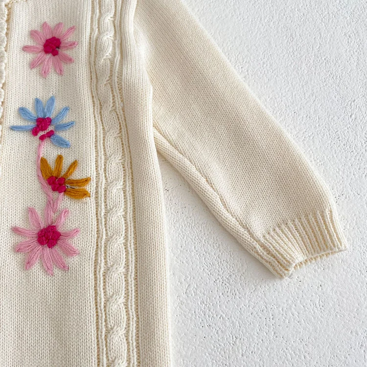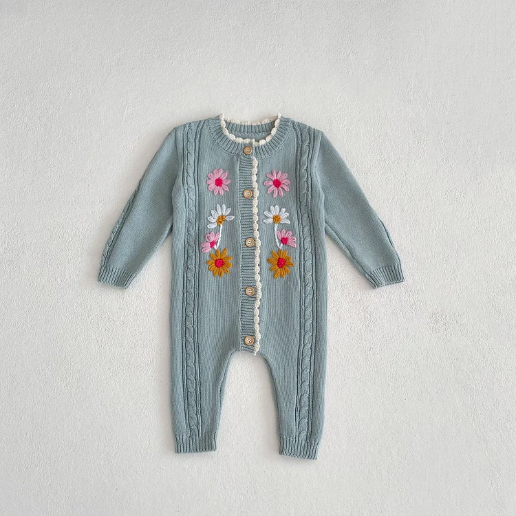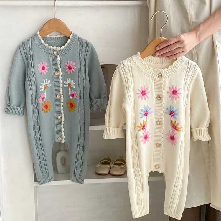 【66-90cm】 花柄 ニット ロンパース