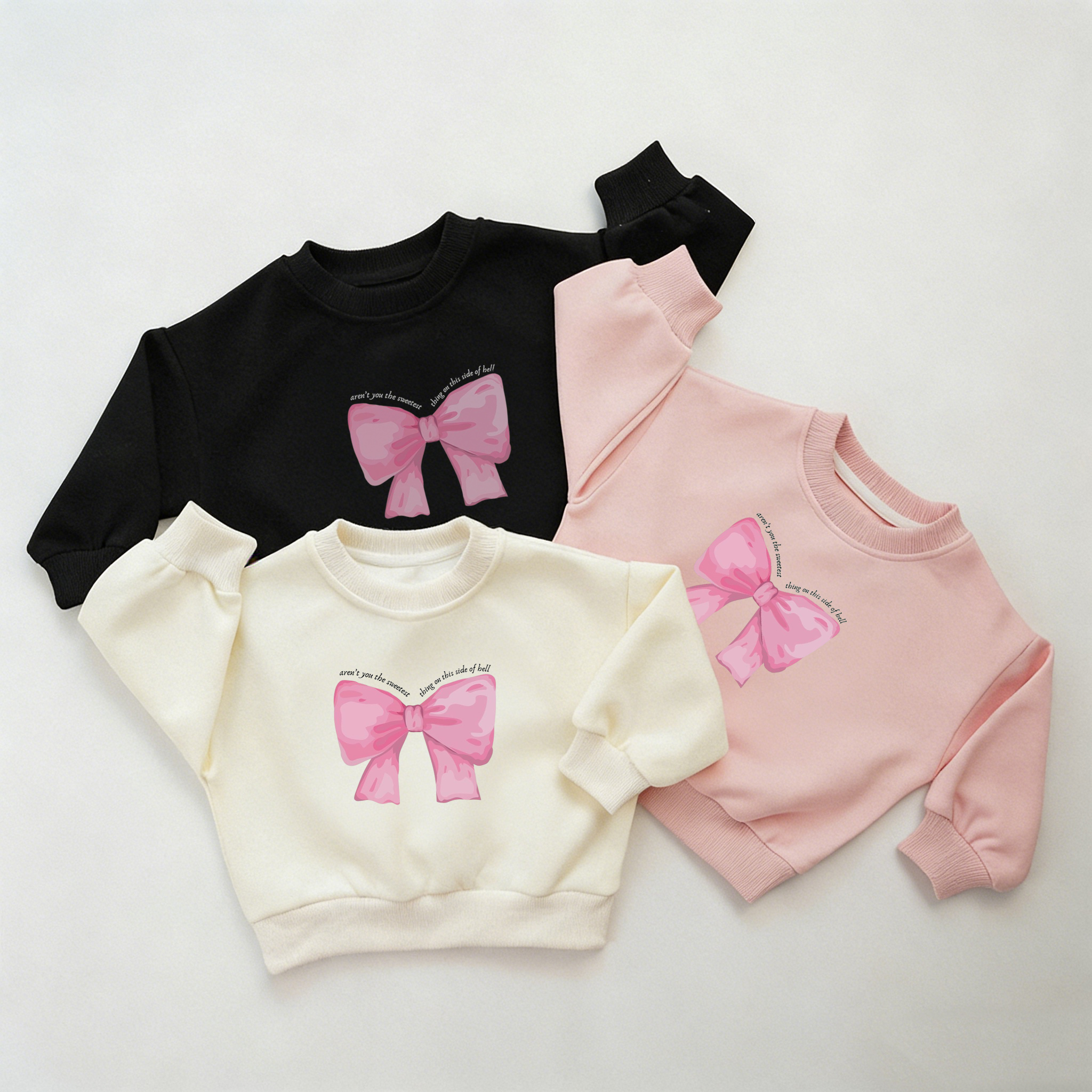 【90-160cm】女の子 リボン プリント おしゃれ トレーナー キッズ服