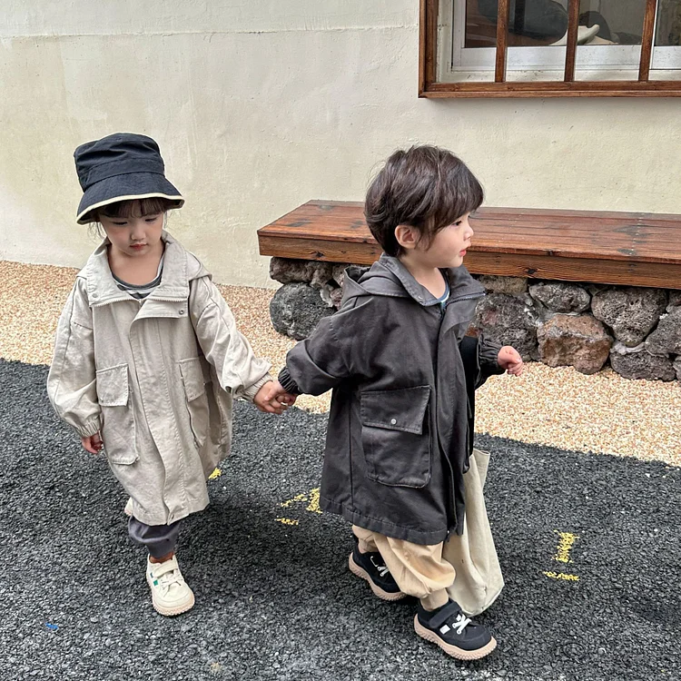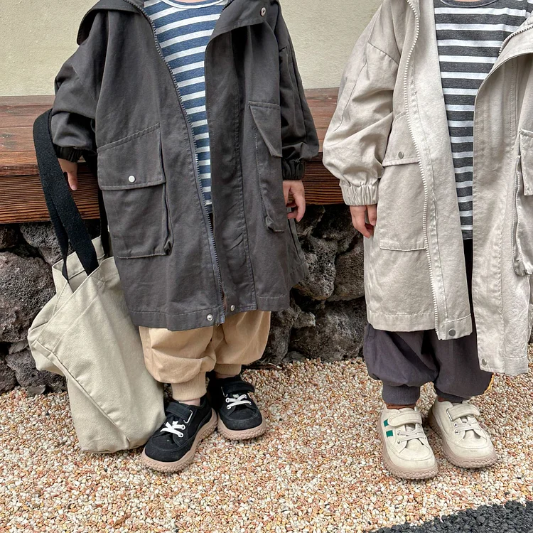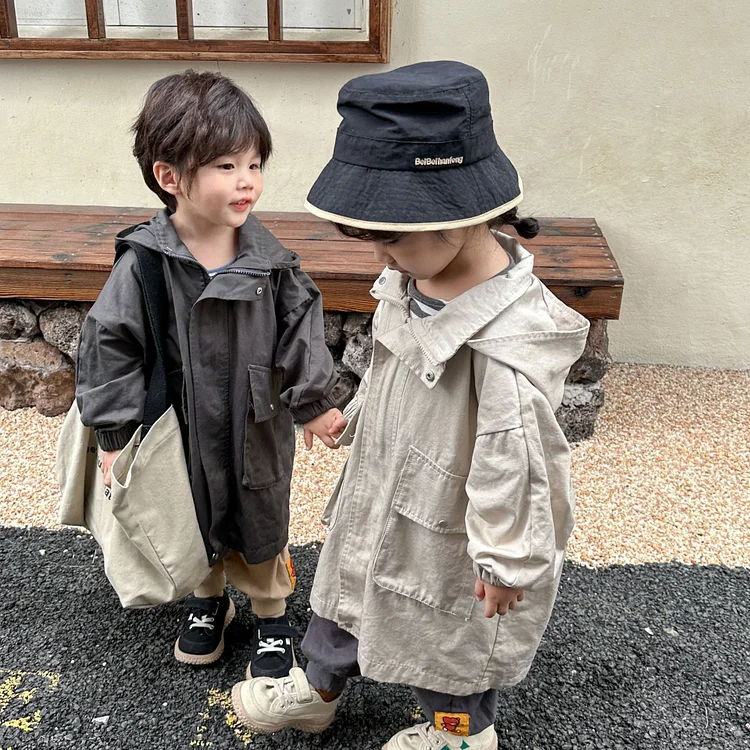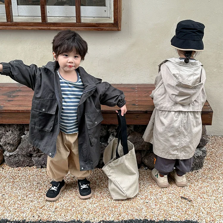 【80-150cm】 フード付き ロング アウター