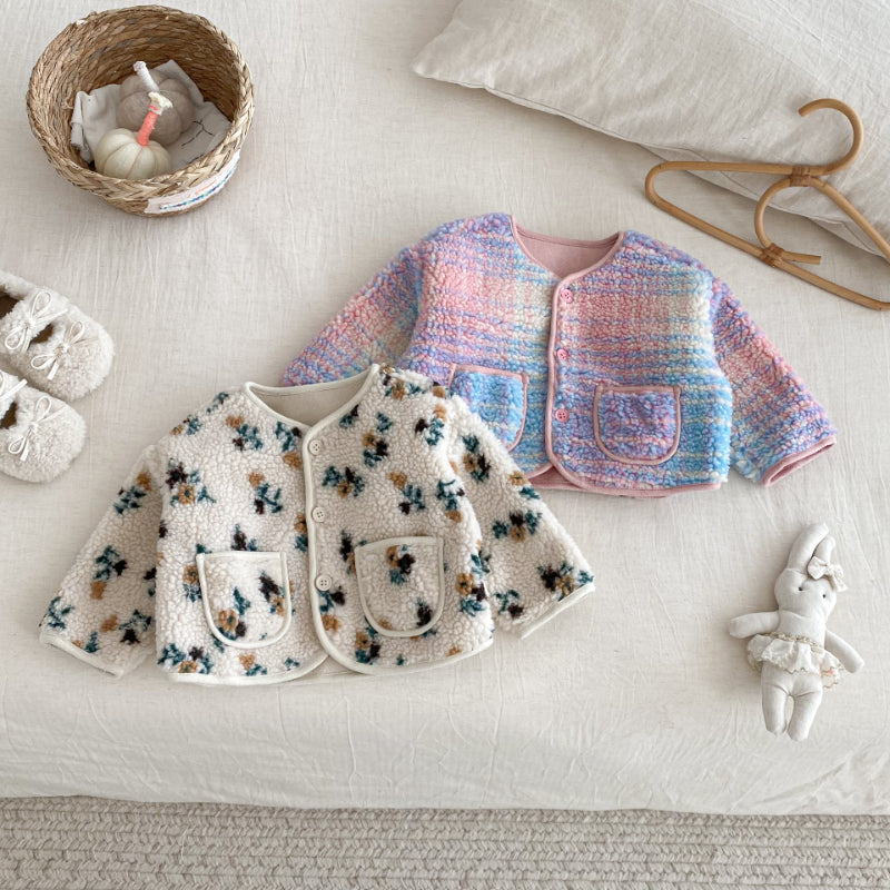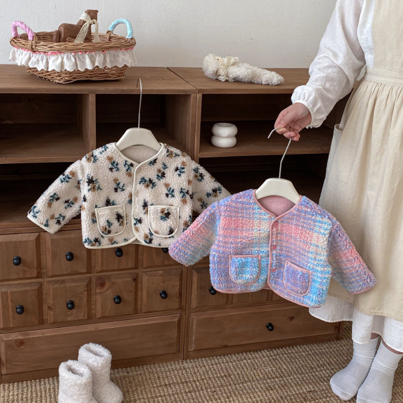 【73-120cm】 花柄 チェック 中綿 ジャケット