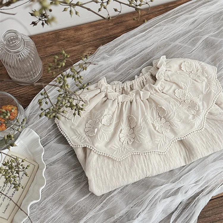 【73-100cm】 フリル フラワー襟 シャツ