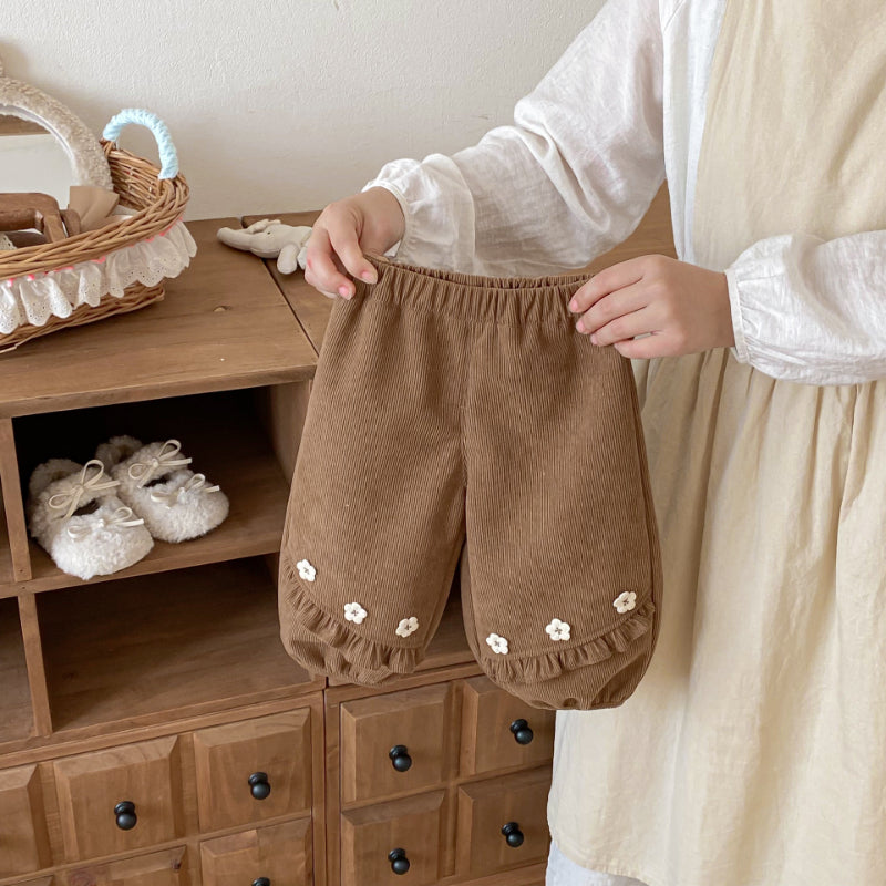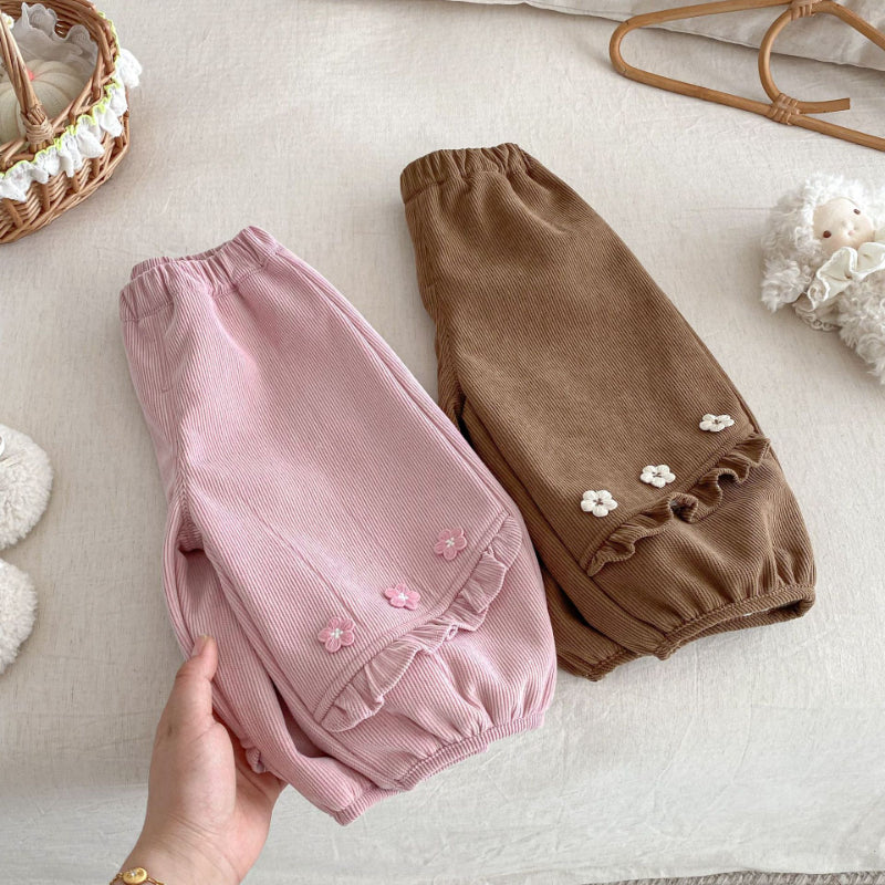 【73-120cm】 小花 裏起毛 パンツ