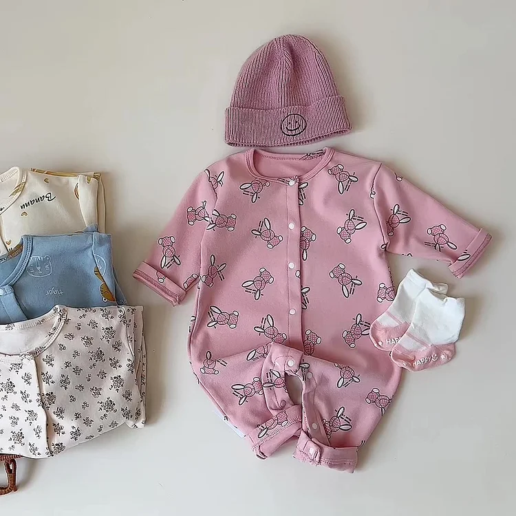 【66-90cm】ウサギor花柄ORパンダ オールインワン