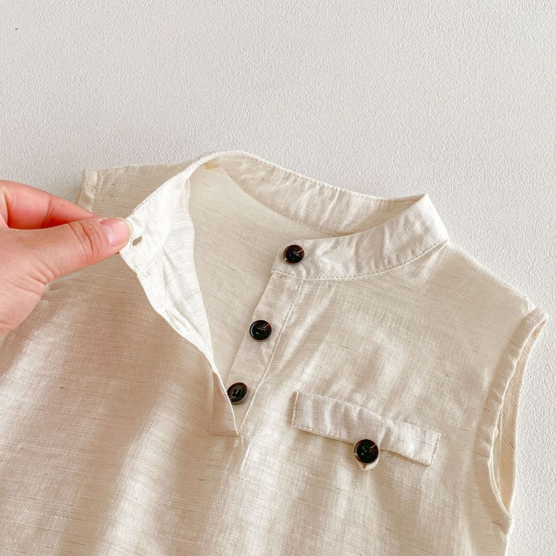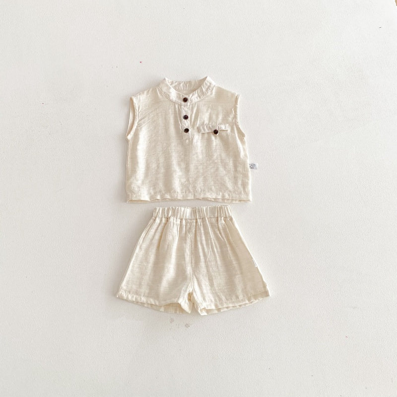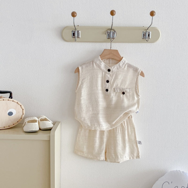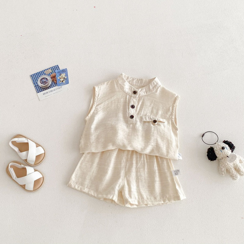 【73-100cm】セットアップ トップス&ショートパンツ 無地 ノースリーブ