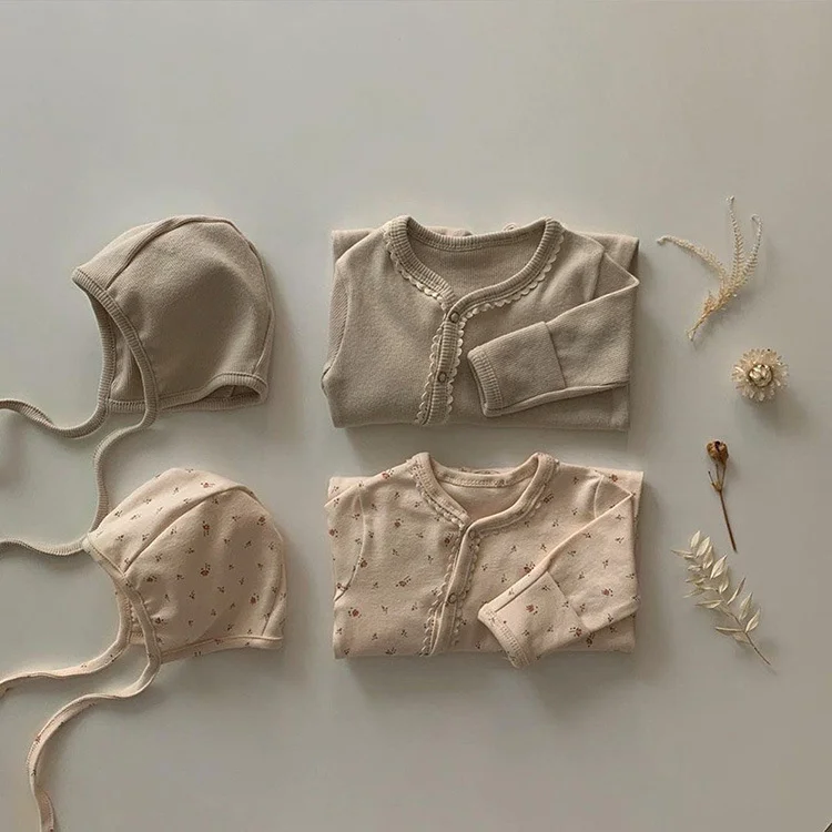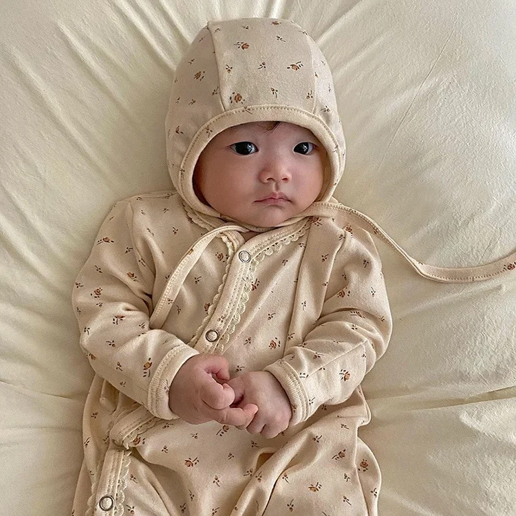 【66-90cm】ボンボン付き 花柄 オールインワン