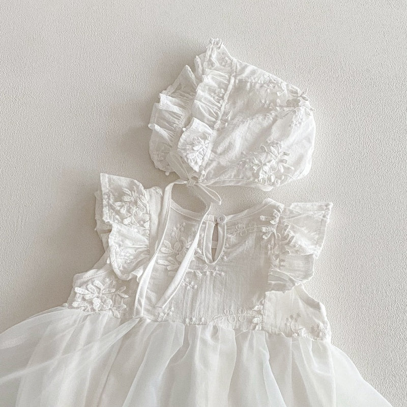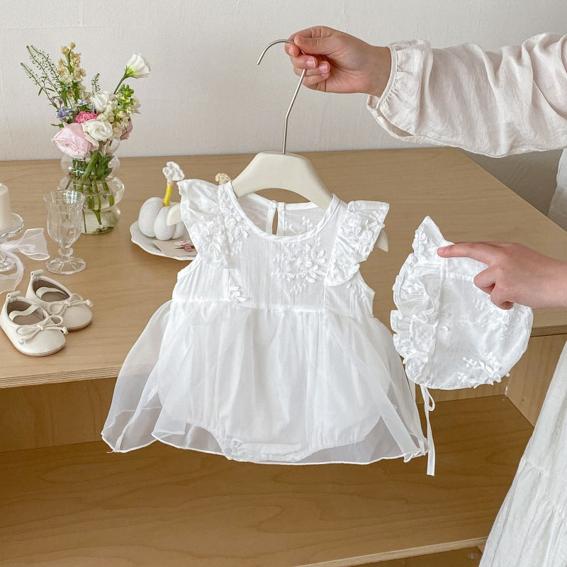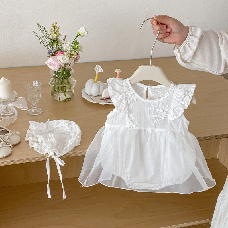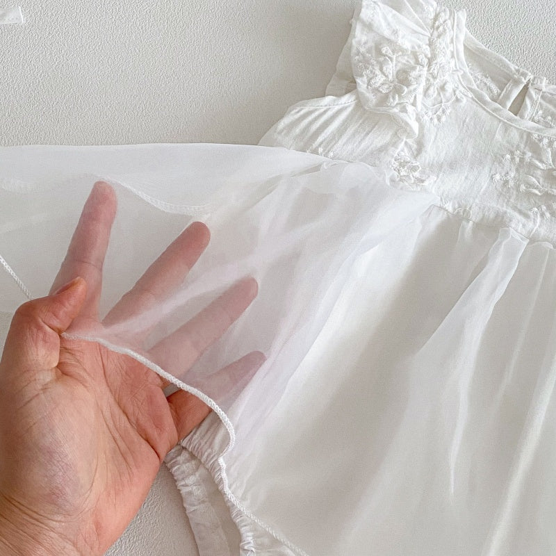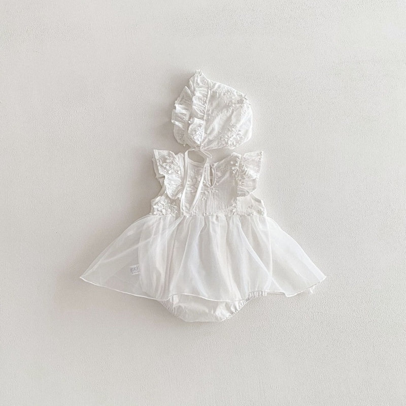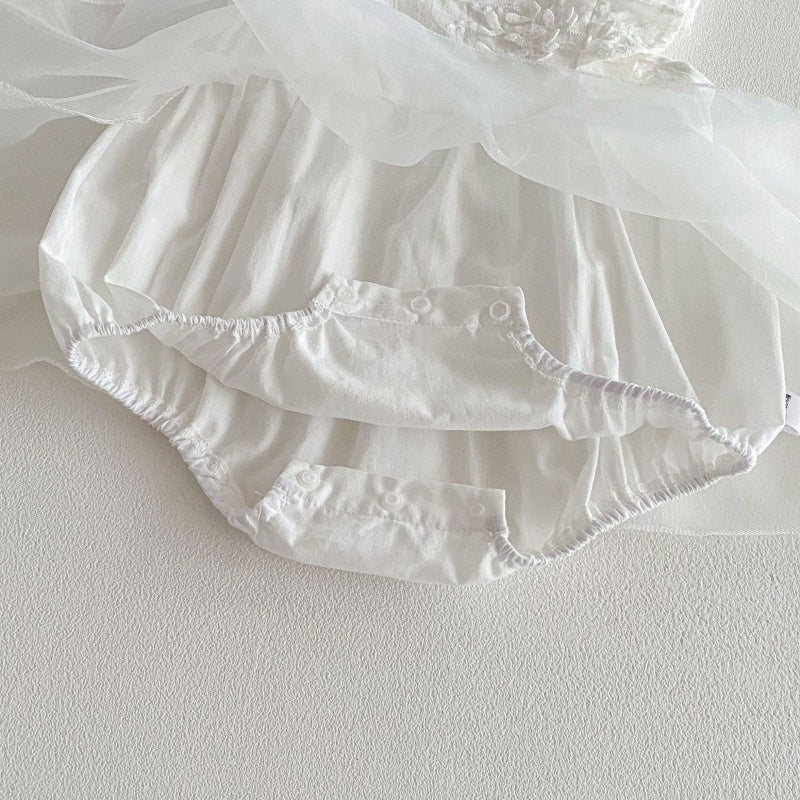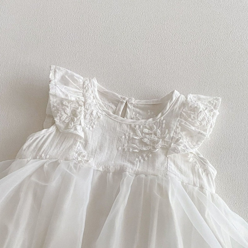 【66-90cm】ロンパースワンピース ベビー 女の子 フリルスリーブ チュール