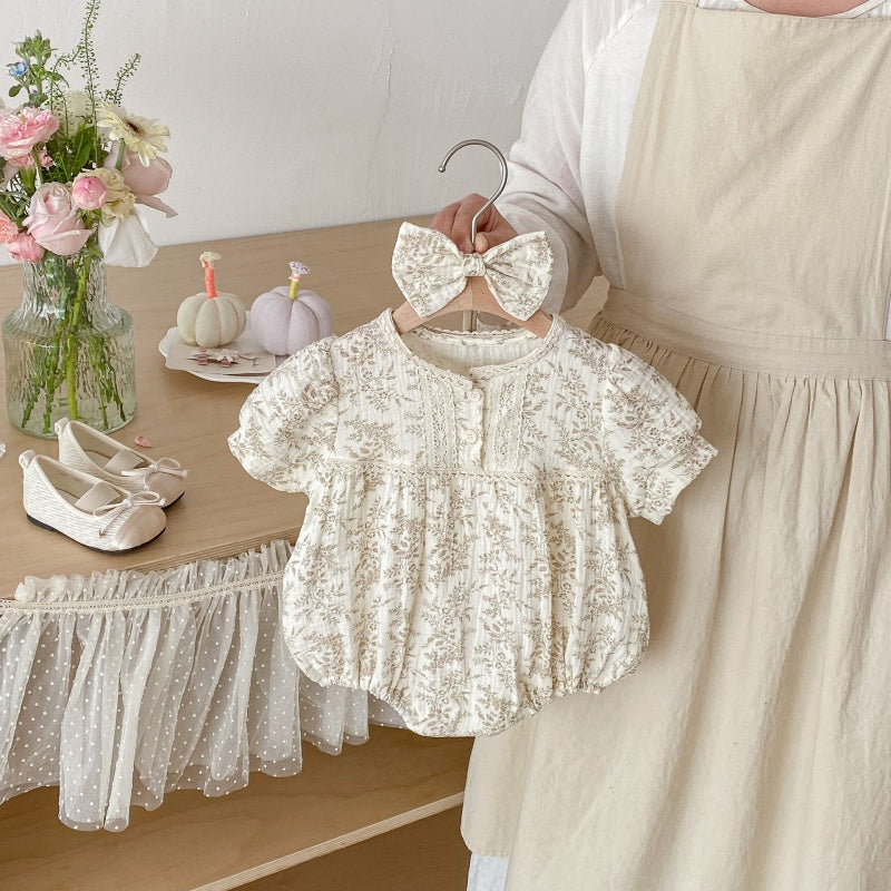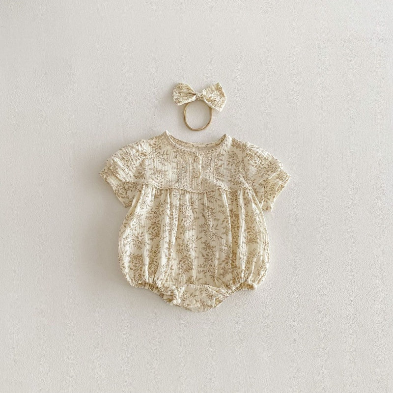 【66-90cm】ロンパース ベビー おしゃれ しぼ感 プリント