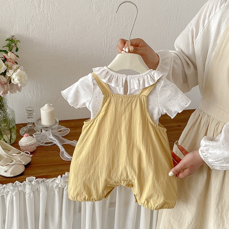 【66-90cm】セットアップ サロペット&Tシャツ ベビー 女の子 フリル襟 大きめポケット