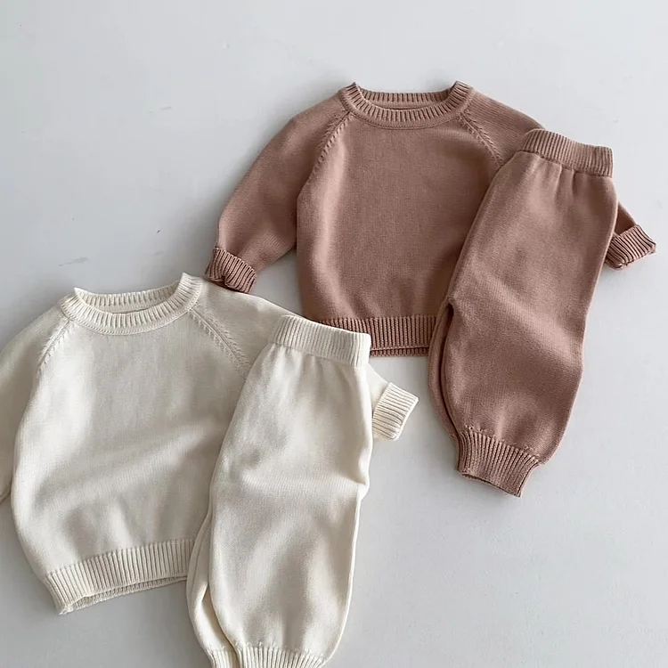 【80-130cm】 シンプルデザイン ニットトップス or ボトムス