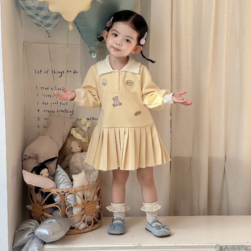 【73-100cm】切替プリーツスカート カレッジ風 カートゥーン