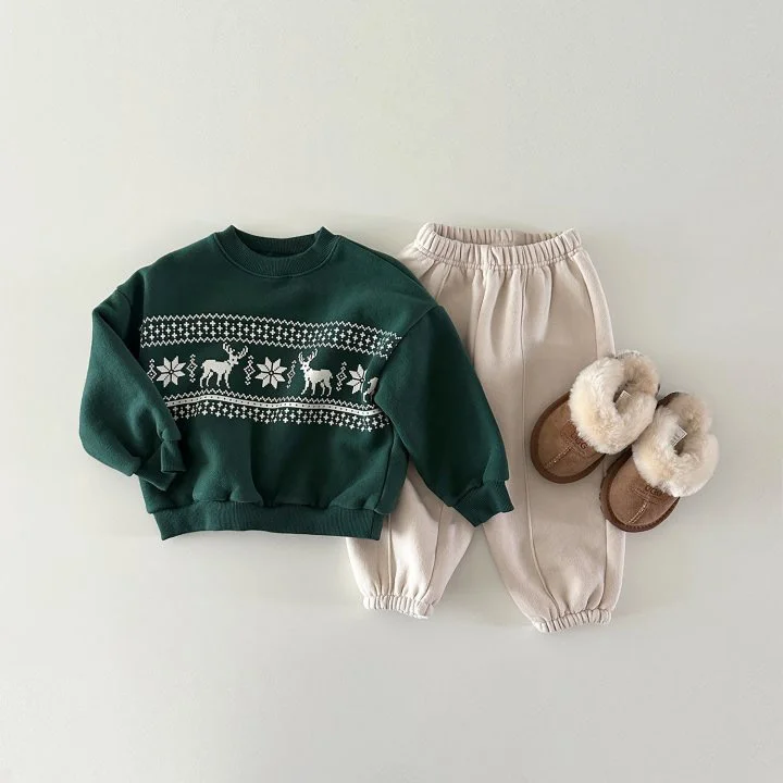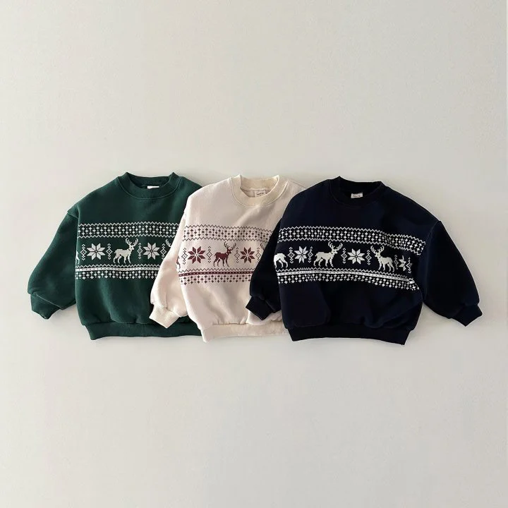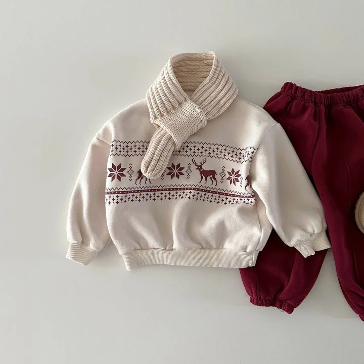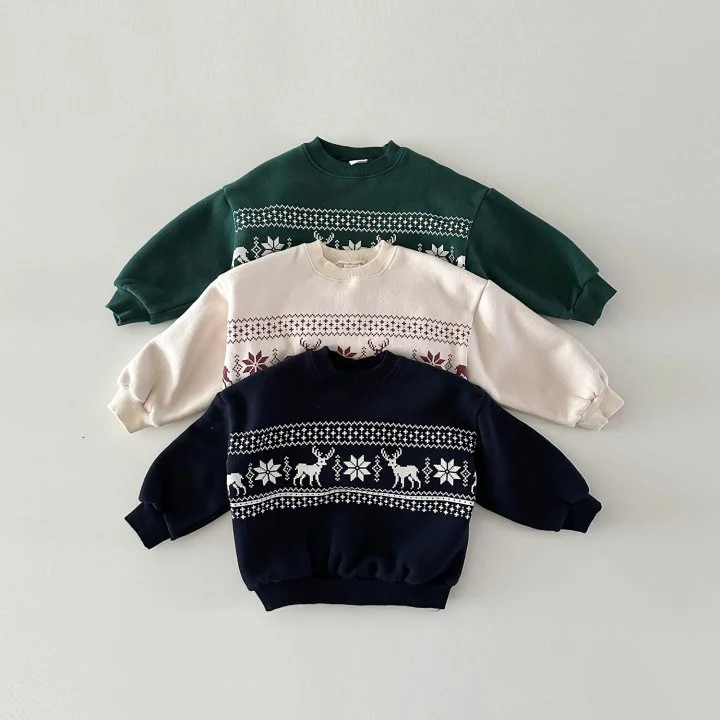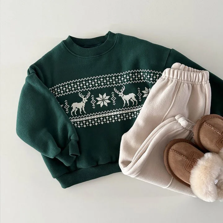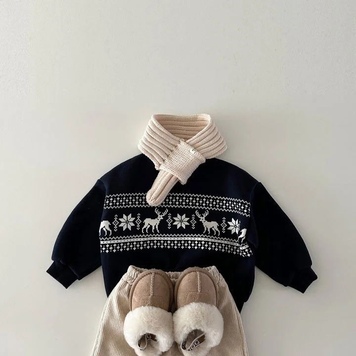 【80-130cm】 鹿柄 ボア付き トップス