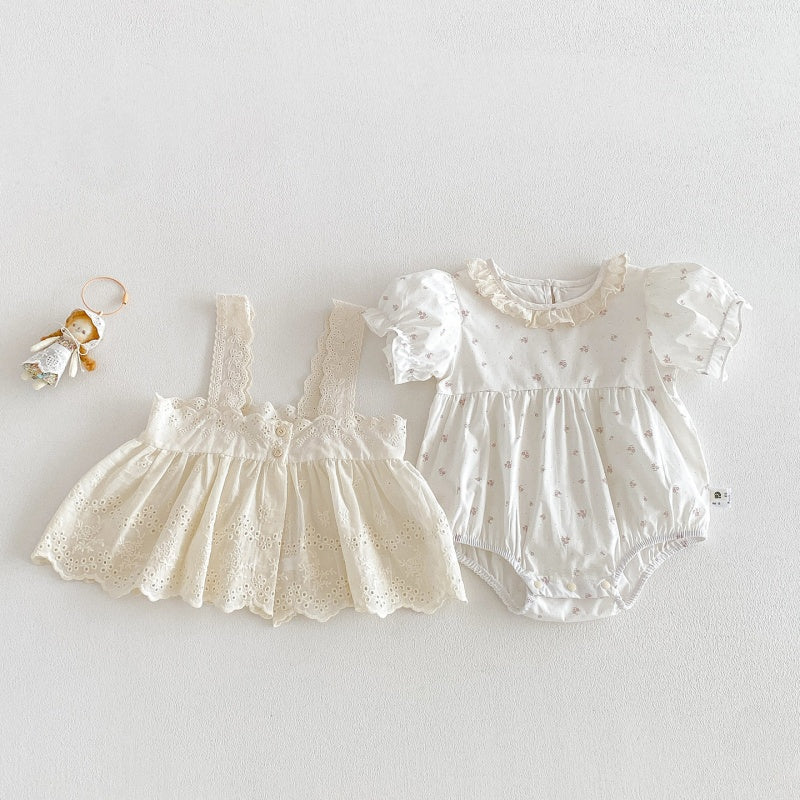 【66-90cm】2点セット ロンパース ベビー 花柄 レース