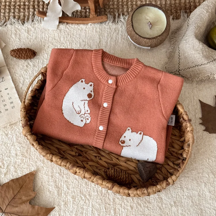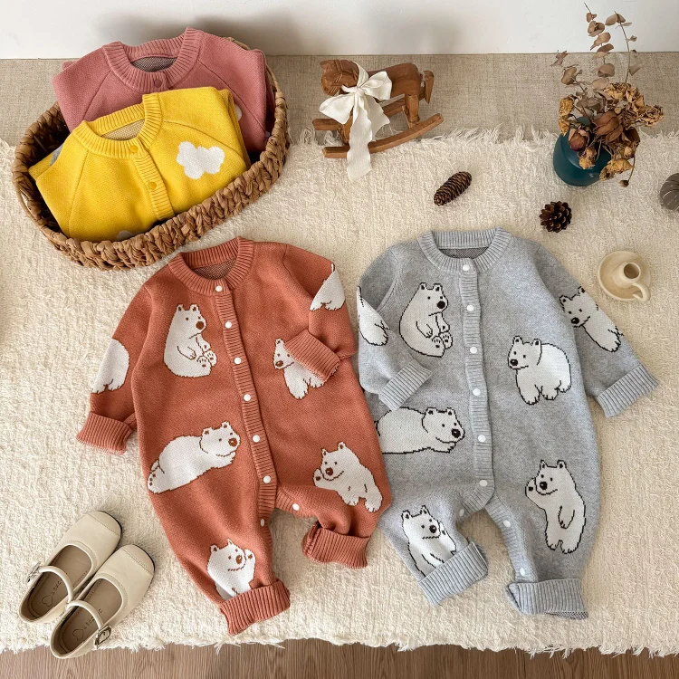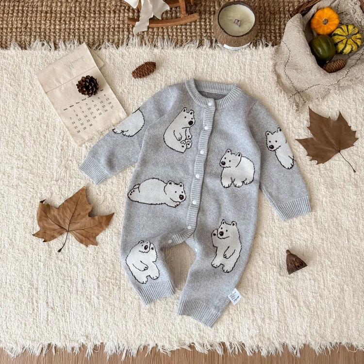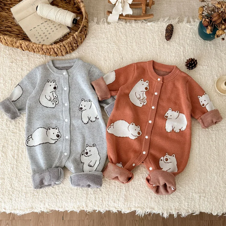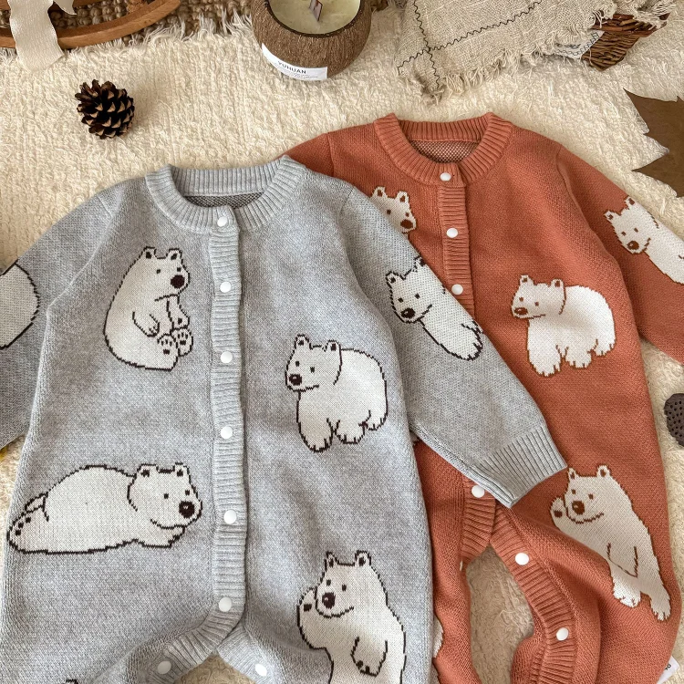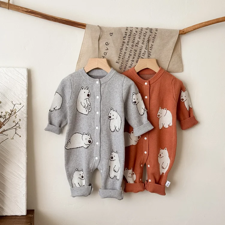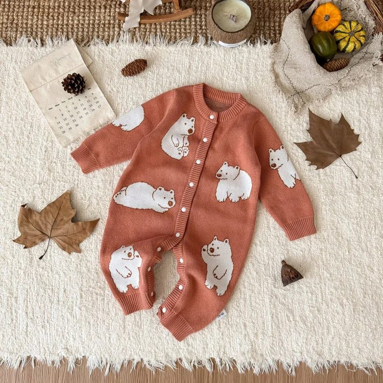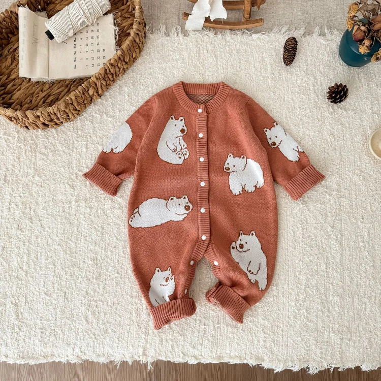 【66-100cm】熊柄ニットオールインワン