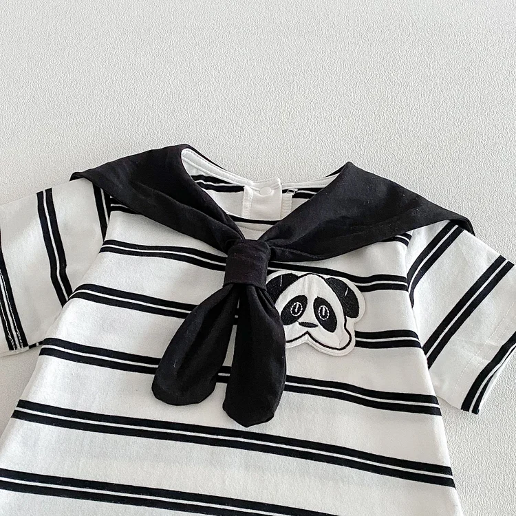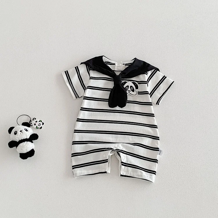 【66-90cm】ロンパース ベビー ボーダー柄 パンダ セーラ風