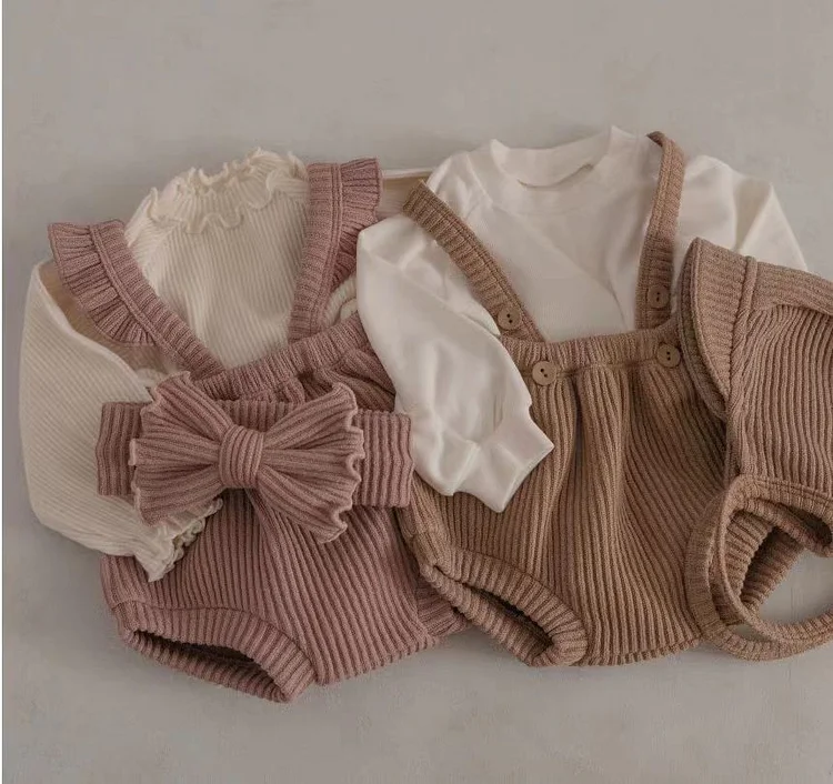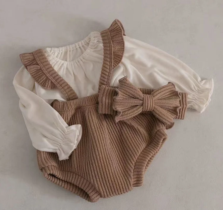 【66-90cm】INS映え 可愛い フリル ニット サロペット
