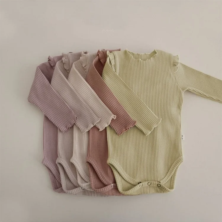 【66-90cm】 韓国風 シンプル リブ ロンパース