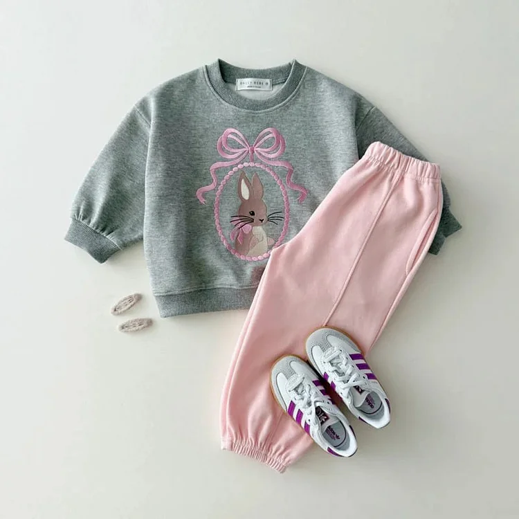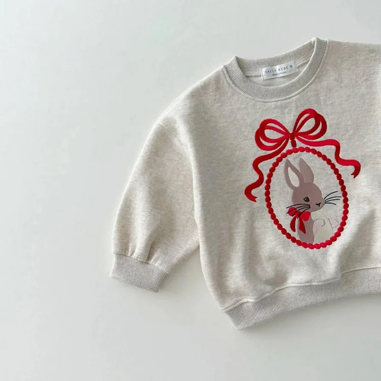 【80-130cm】 リボン ウサギ プルオーバ トレーナー