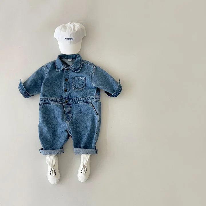 【66-100cm】 ポケット ポロ デニム オールインワン