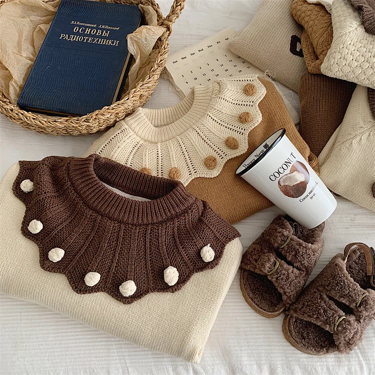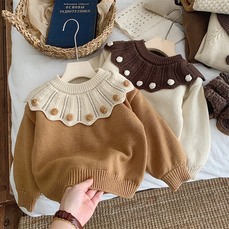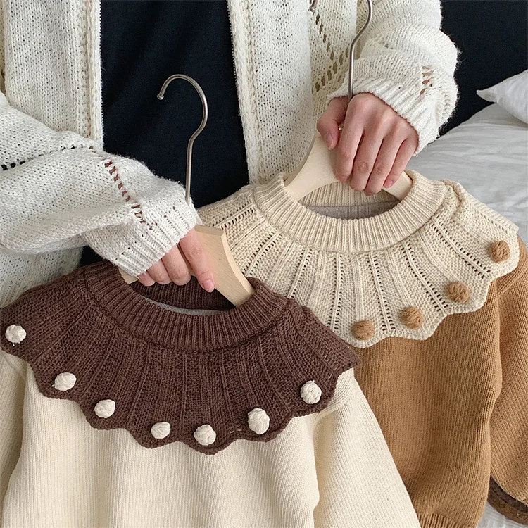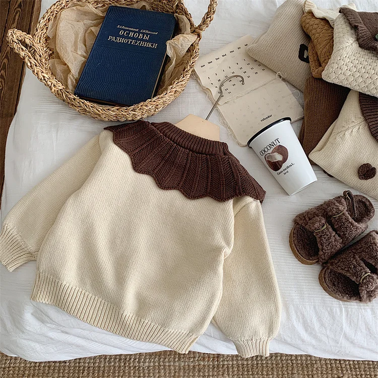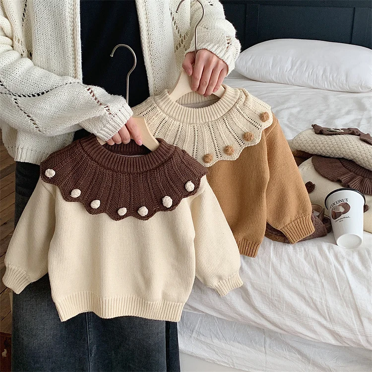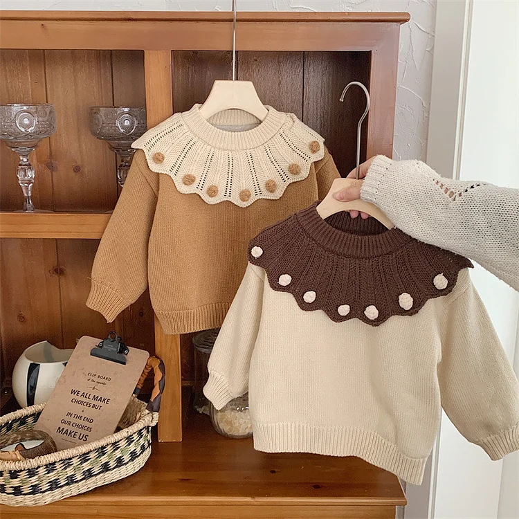 【90-130cm】 フリルビッグ襟 ニット トップス