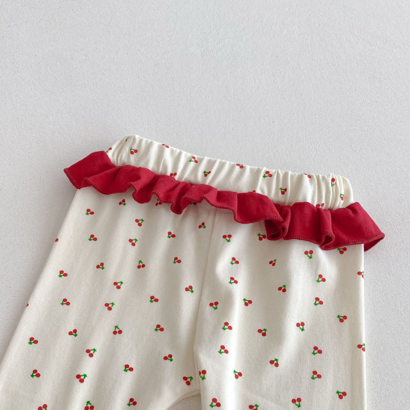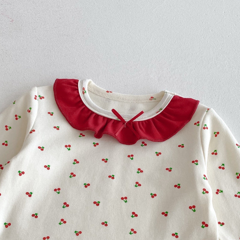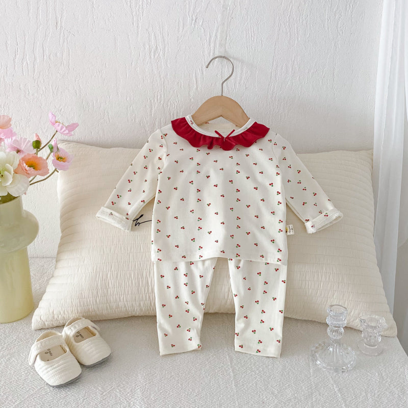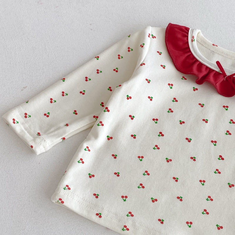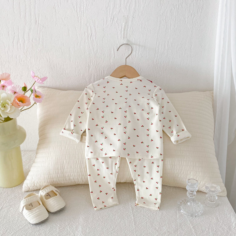 【66-100cm】丸首 さくらんぼ柄 セットアップ ルームウェア