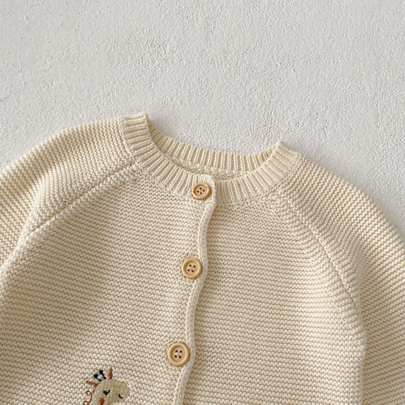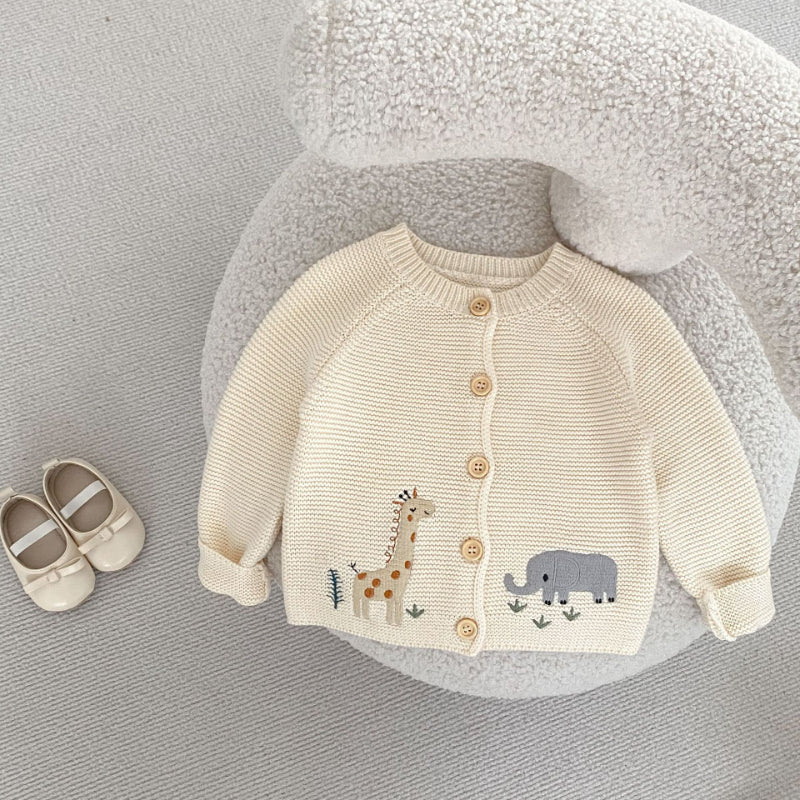 【66-100cm】キリン&ゾウ刺繍 ニット カーディガン