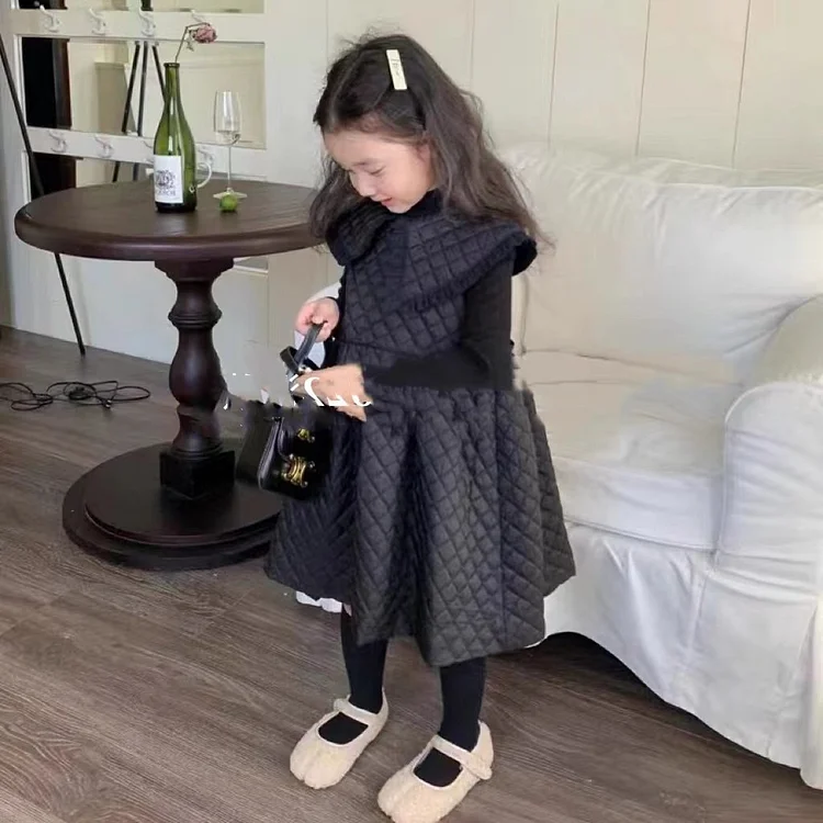 【90-130cm】 インナー シャツ&キルティング ワンピース