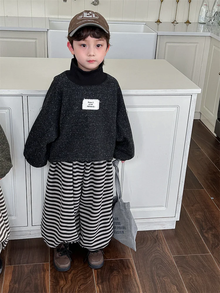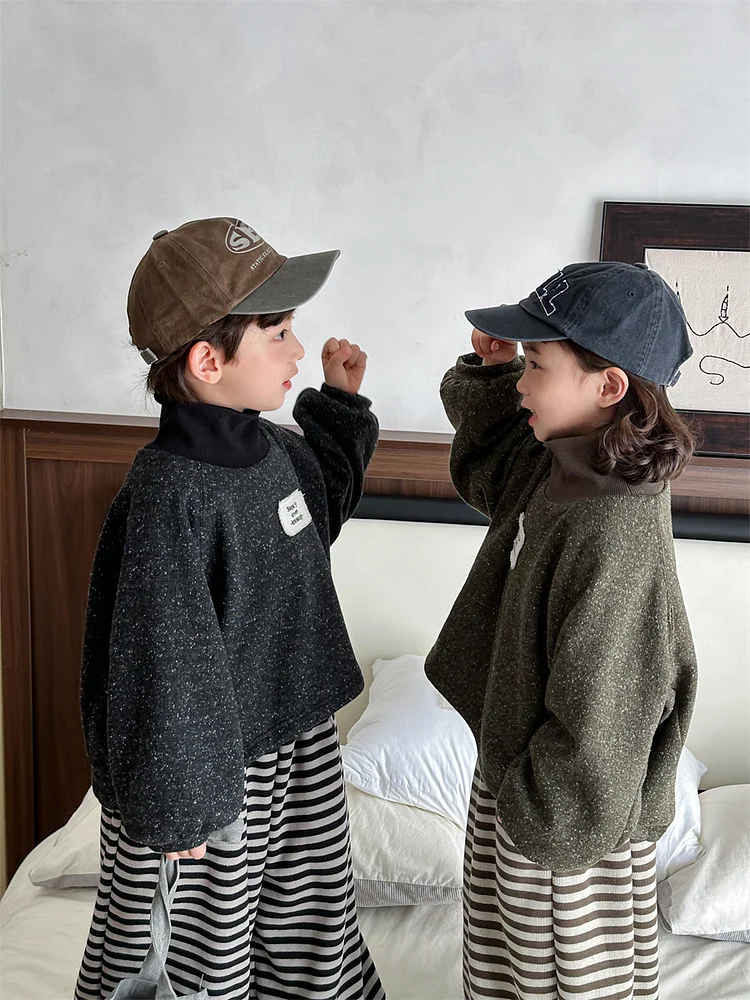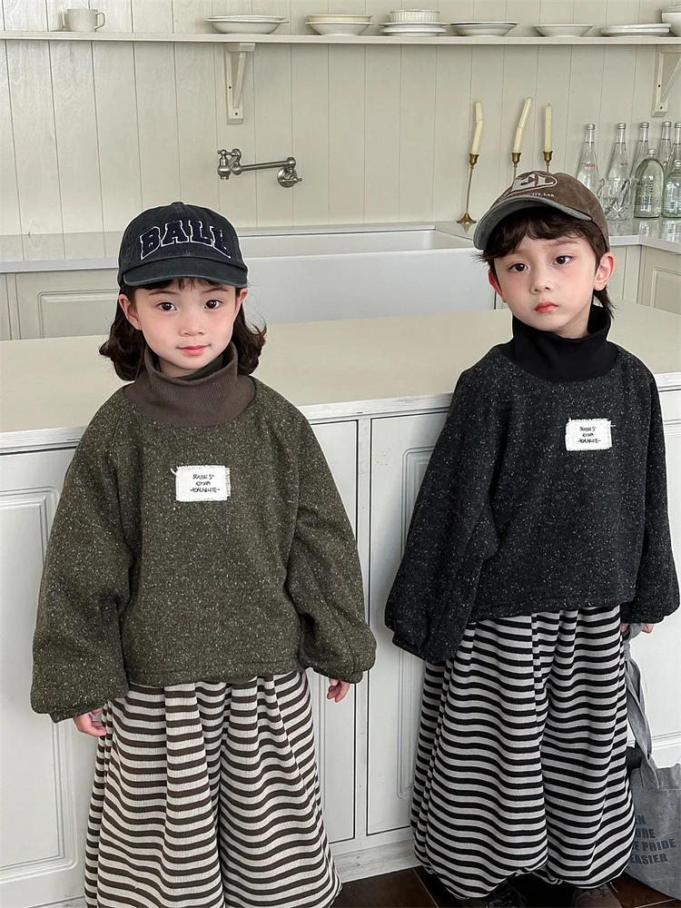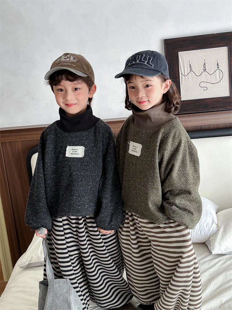 【80-140cm】 ハイネック ミックスカラー トップス