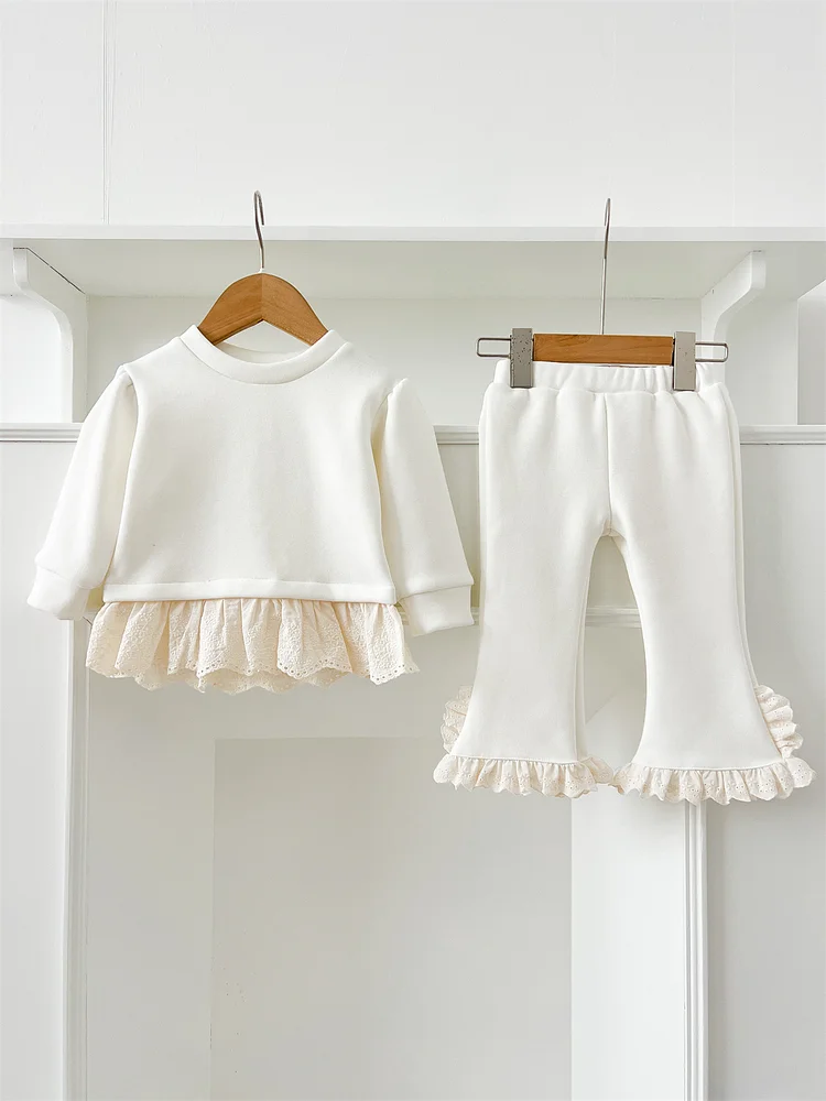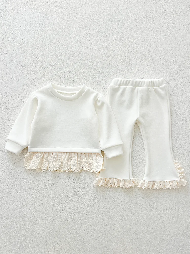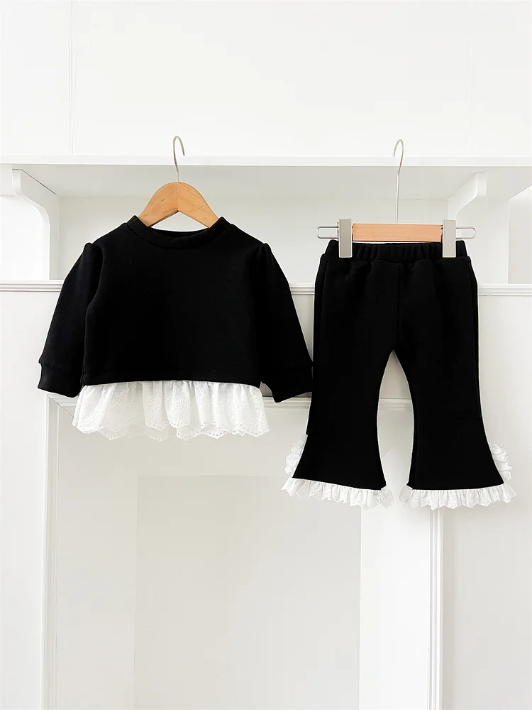 【66-120cm】 レース ノーカラー 裏ボア セットアップ