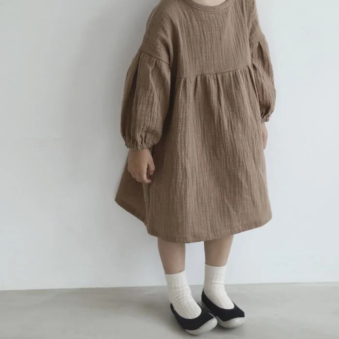 【80-130cm】 パフスリーブ リネン ワンピース