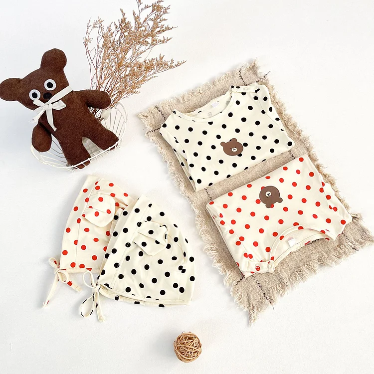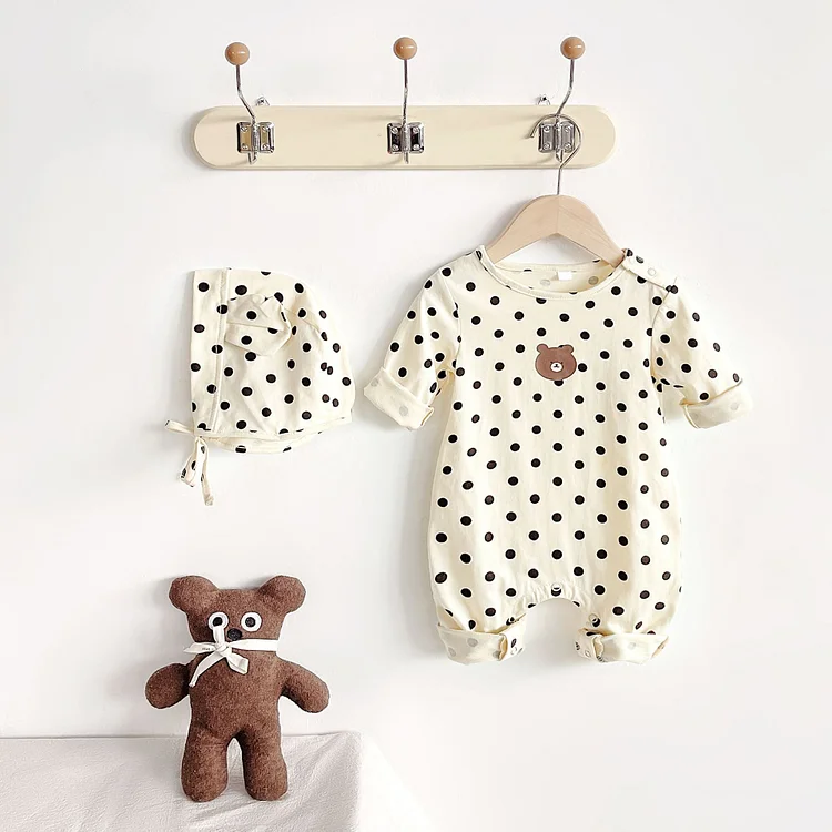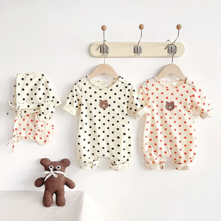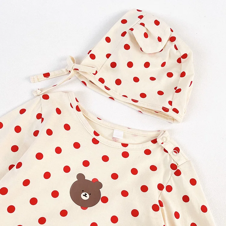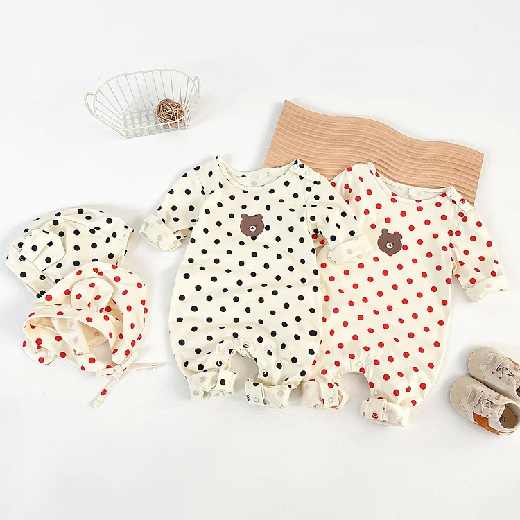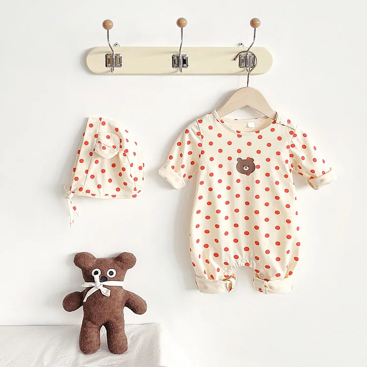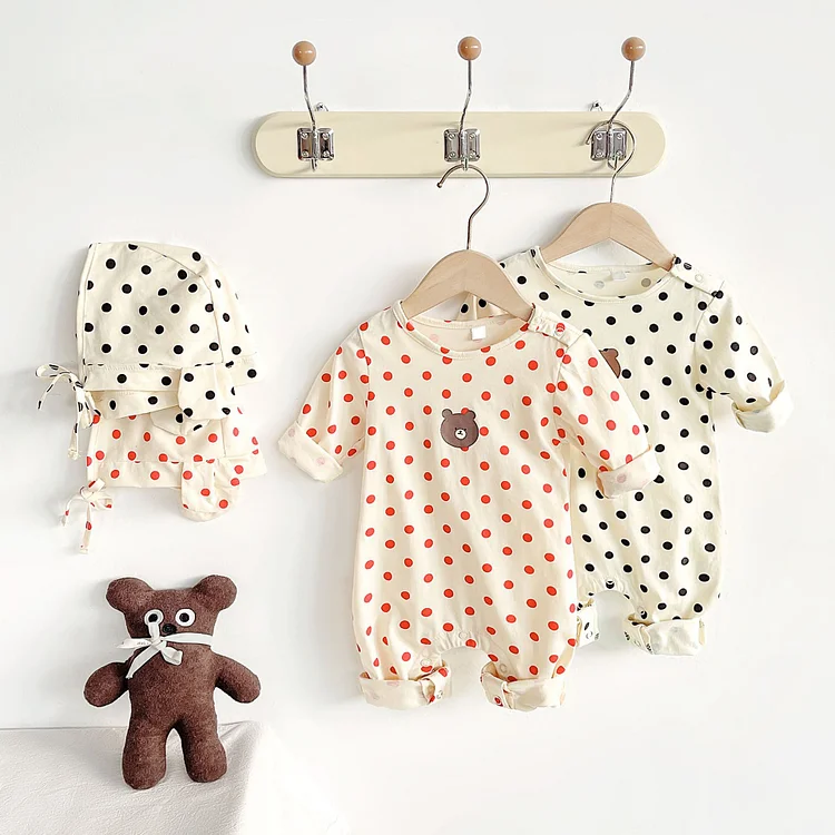 【66-90cm】 ボンネット付きドット オールインワン