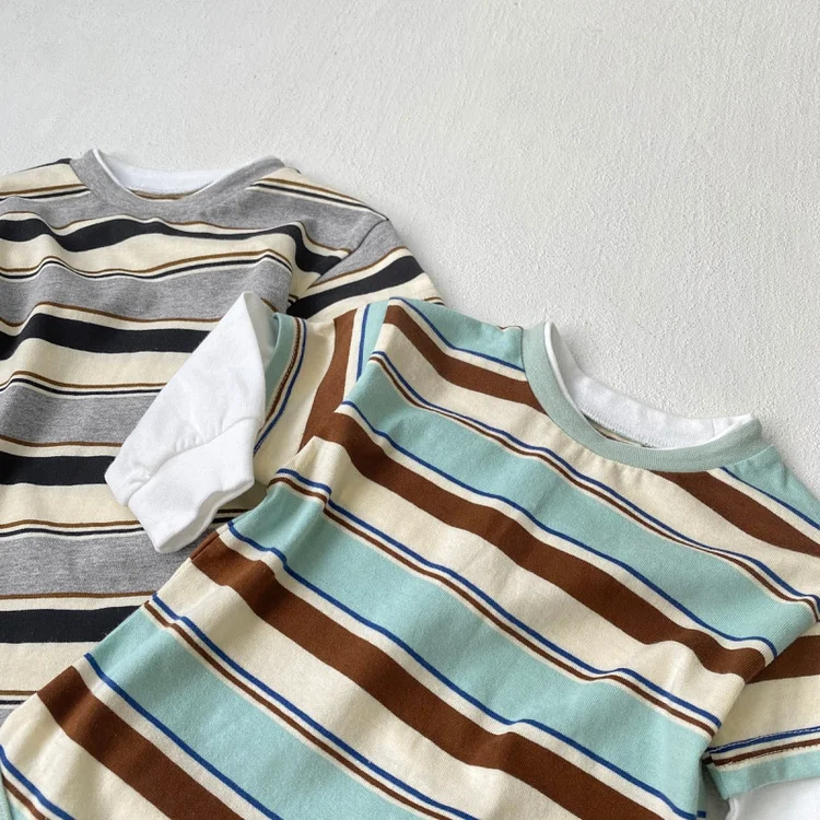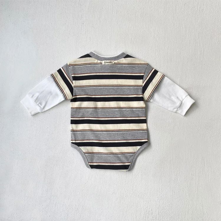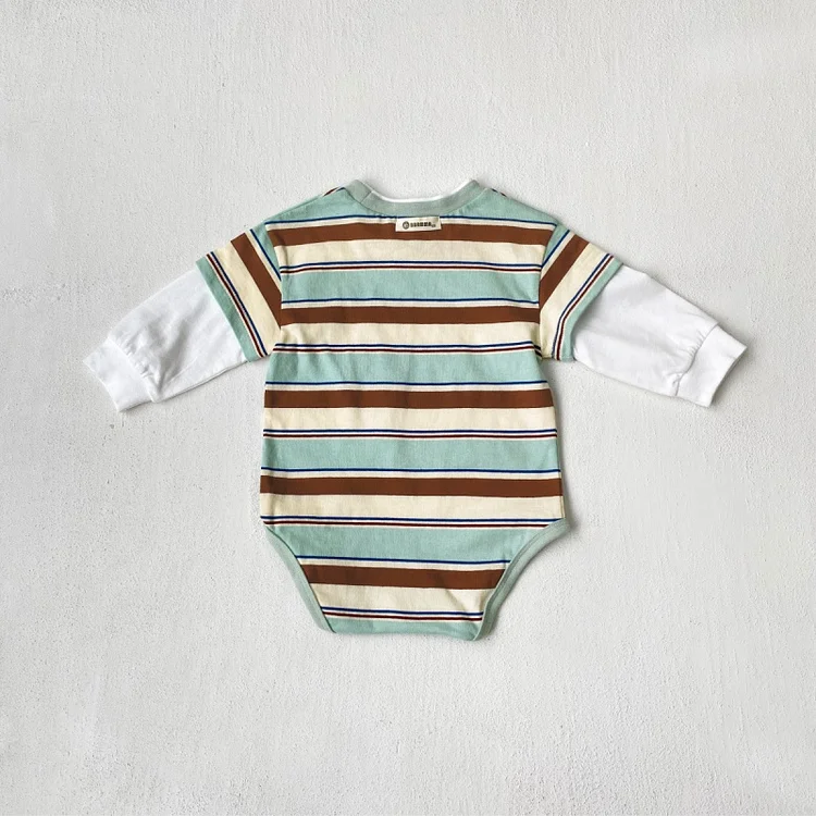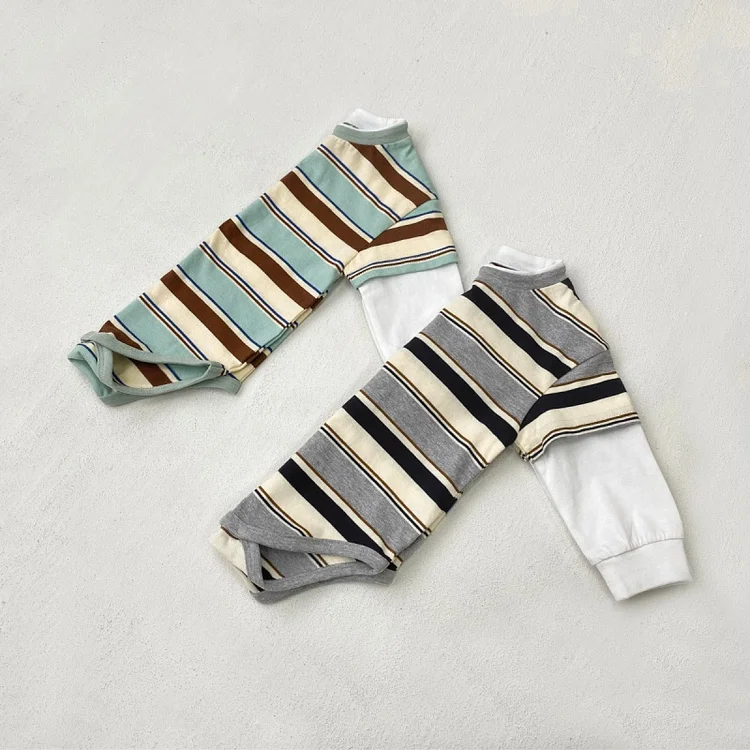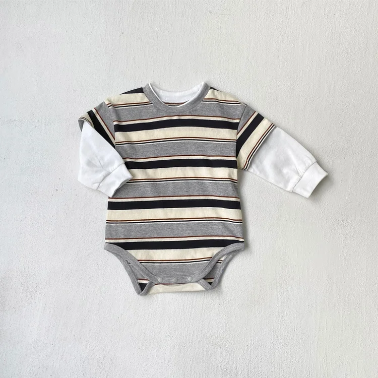 【66-90cm】 カラー切り替え 韓国風 ボーダー ロンパース