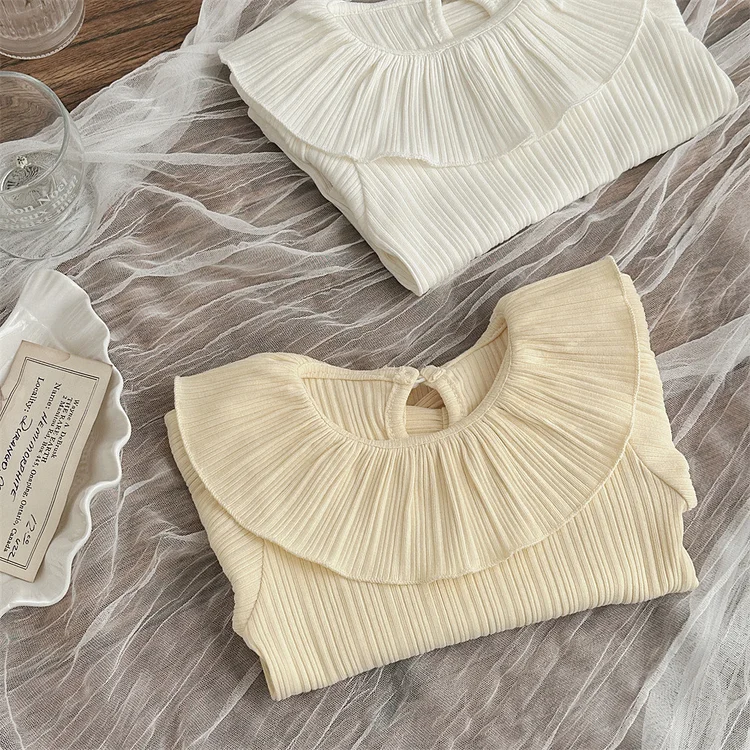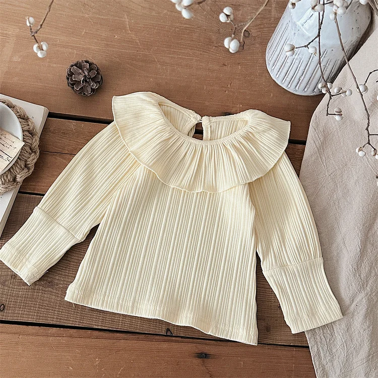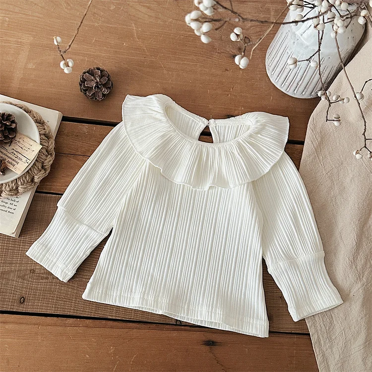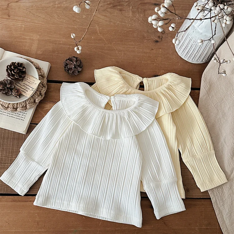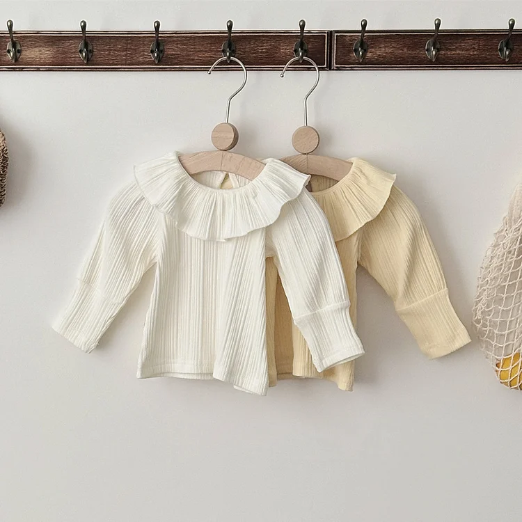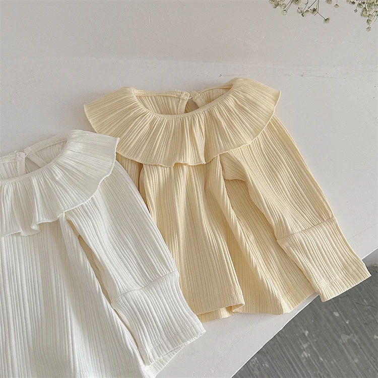 【73-100cm】 フリル丸襟 シャツ