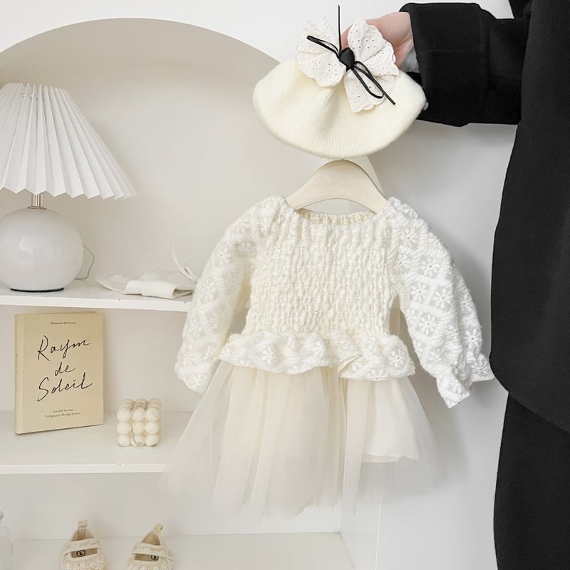 【66-100cm】花刺繡 レース ワンピース