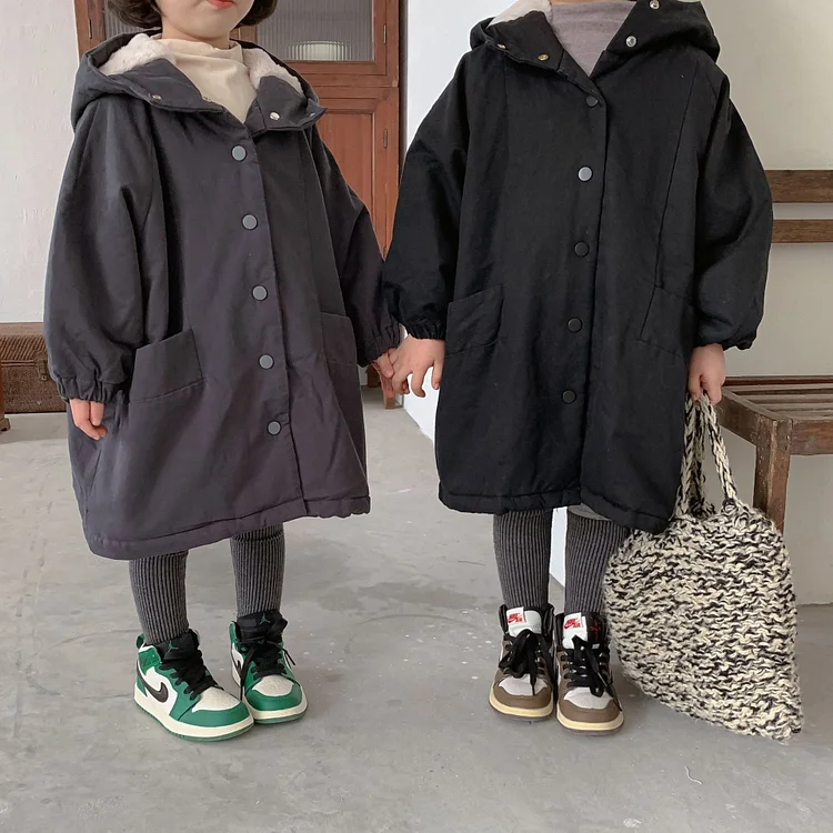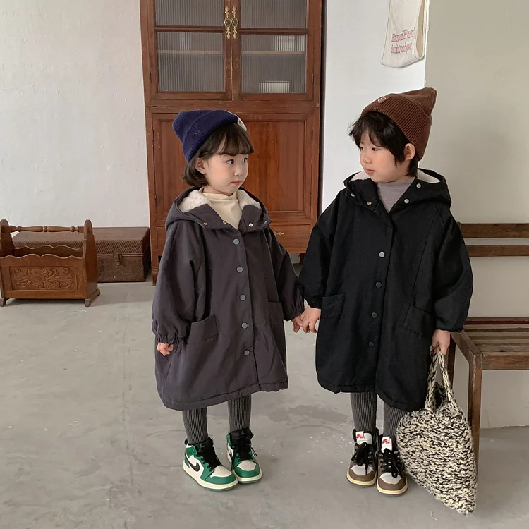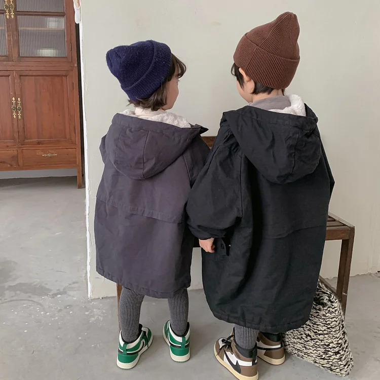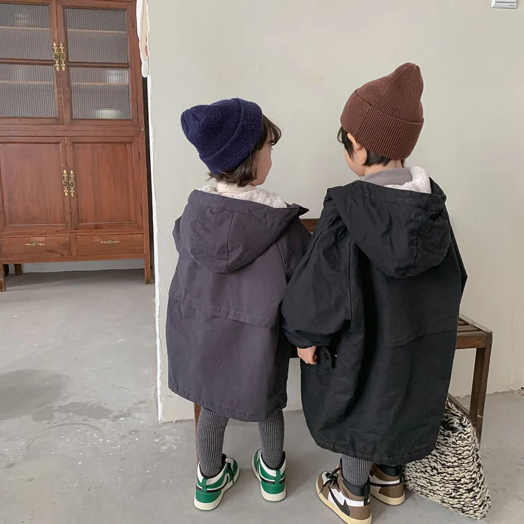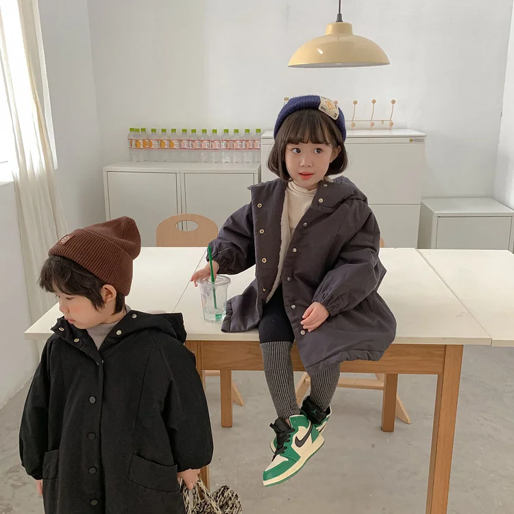 【80-150cm】 韓国風 暖かい フート付き ロングコート