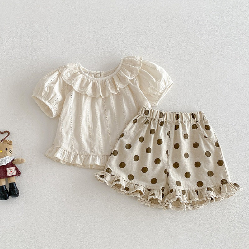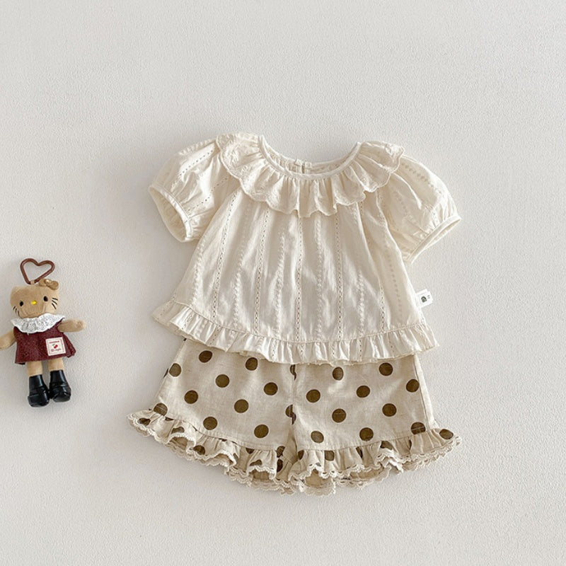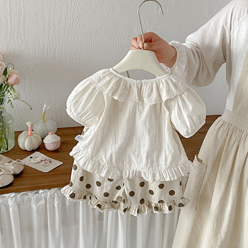【73-100cm】ブラウス or ドットショートパンツ ベビー 女の子 コットン ジャガード