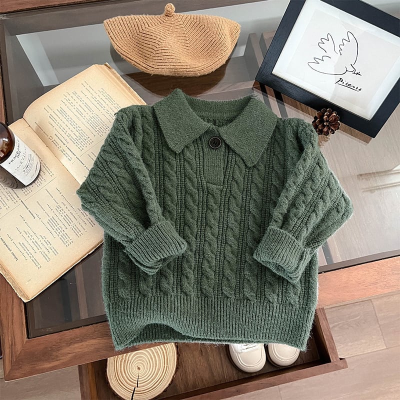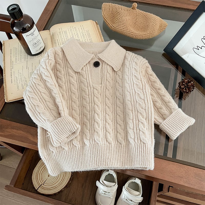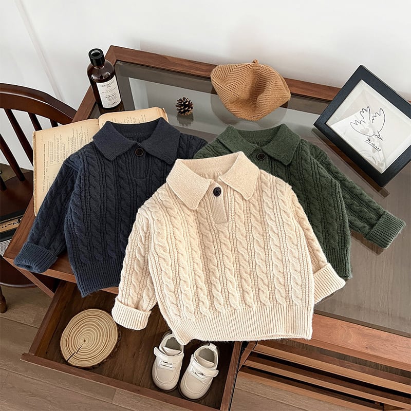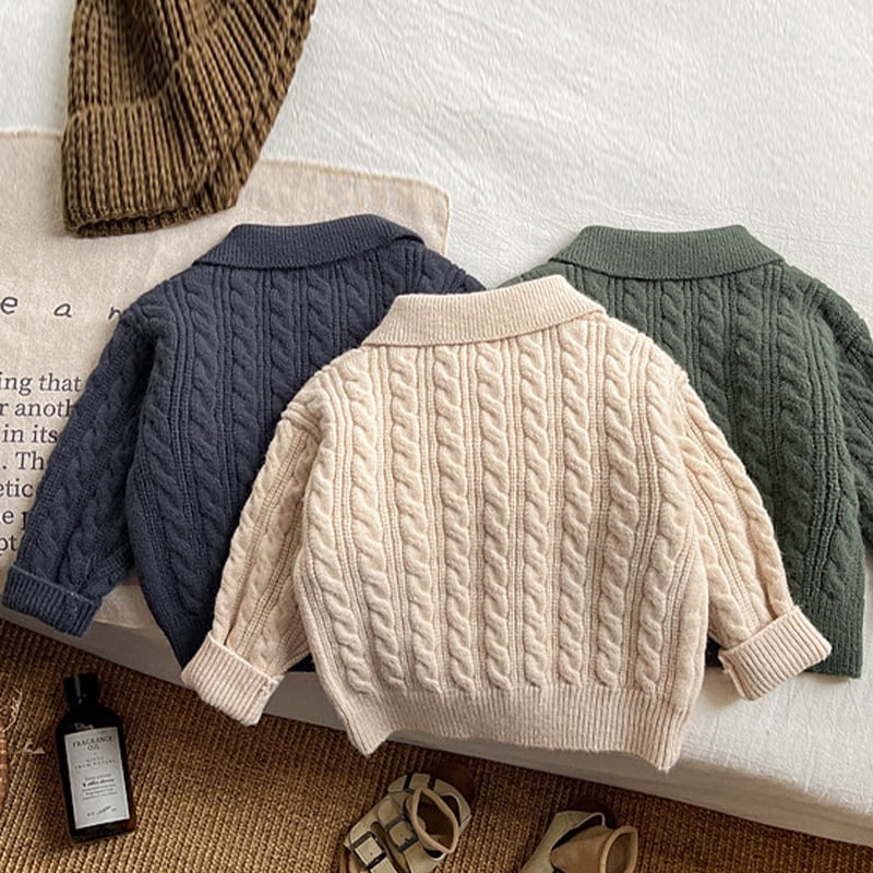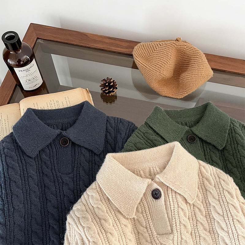 【73-110cm】 ケーブル編み ニット ポロシャツ