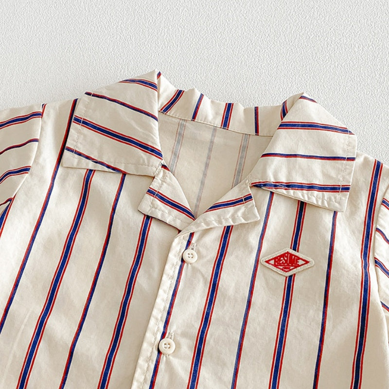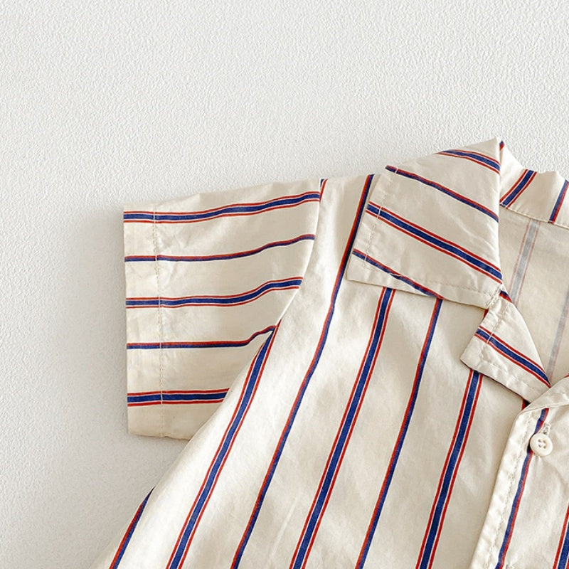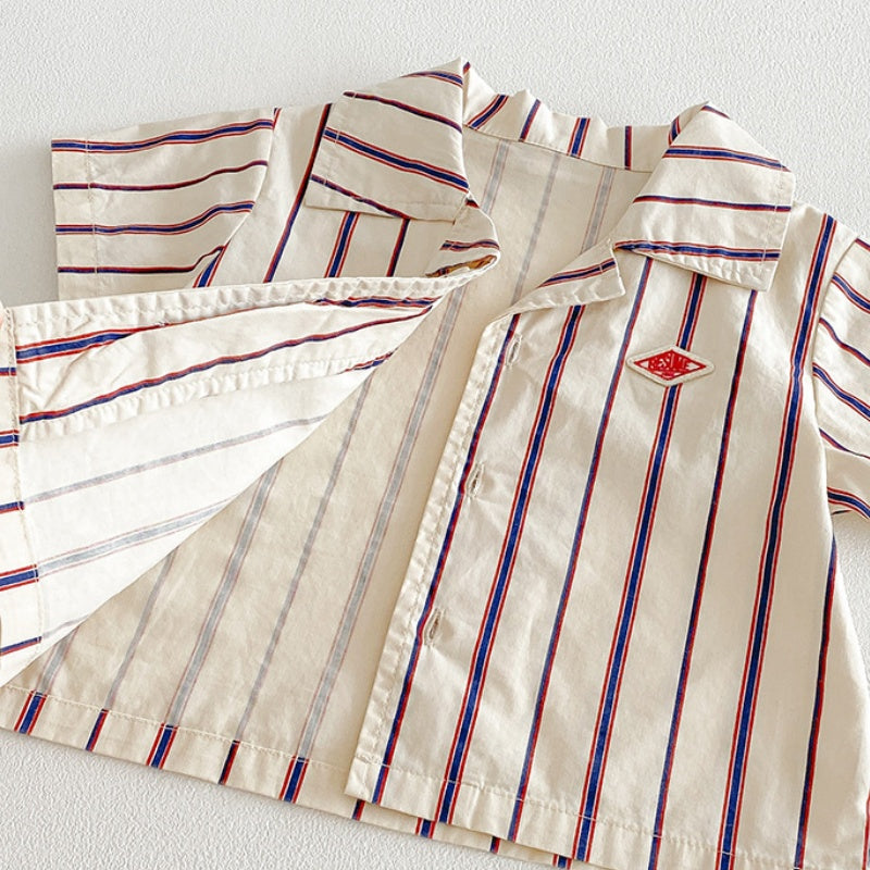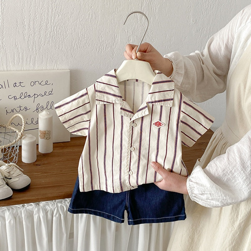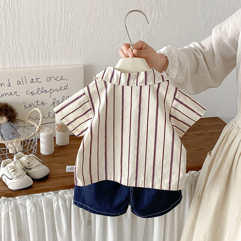 【73-100cm】シャツ or デニムショートパンツ ベビー 男の子 韓国風 ストライプ