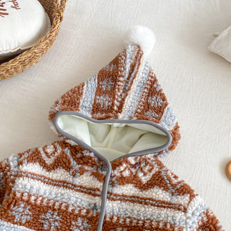 【73-120cm】 レトロ 裏起毛 ジャカード ジャケット